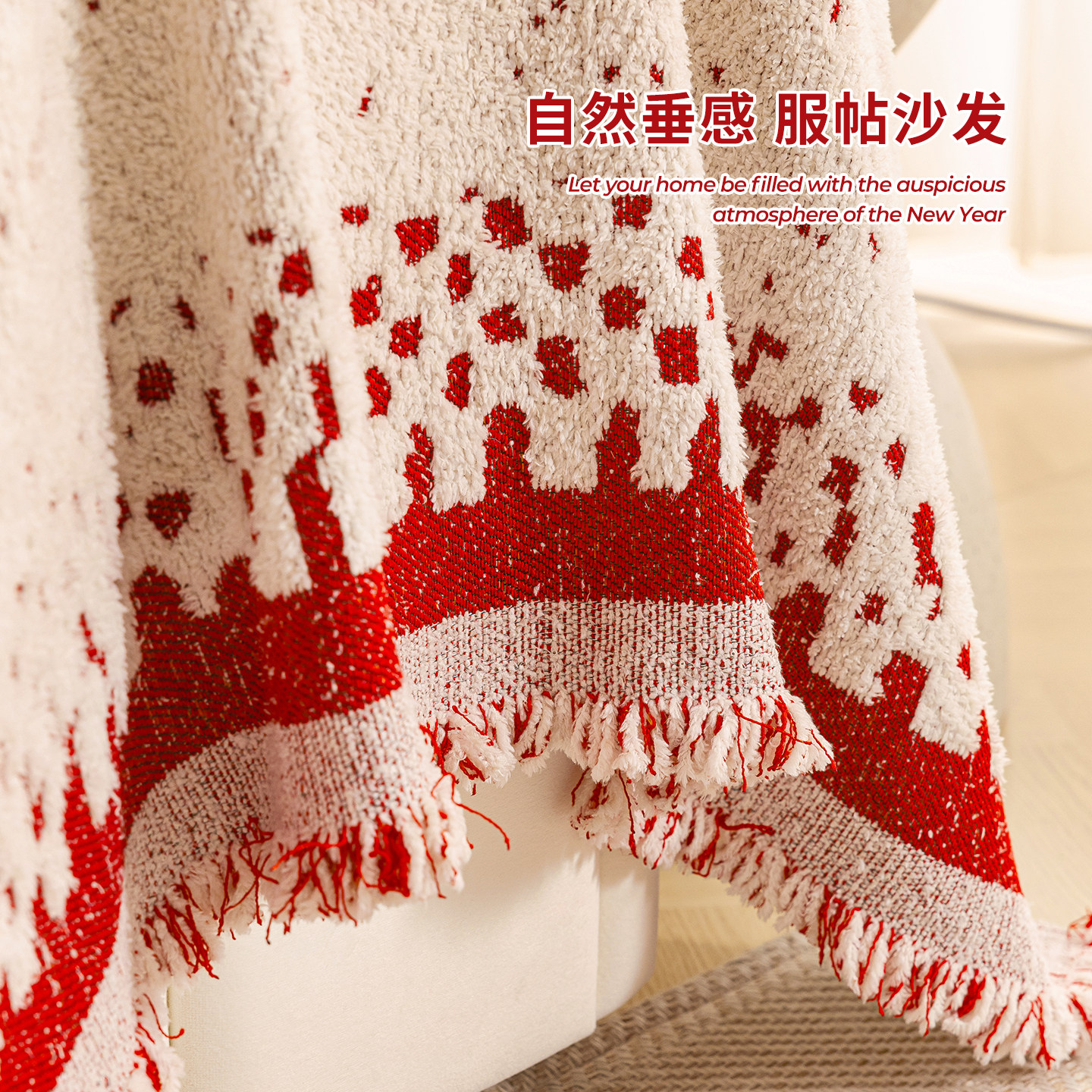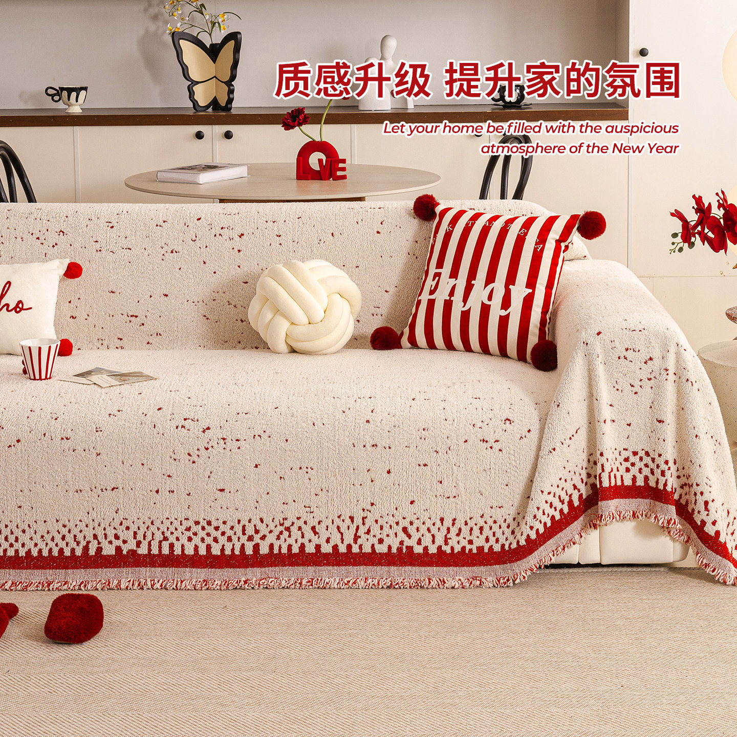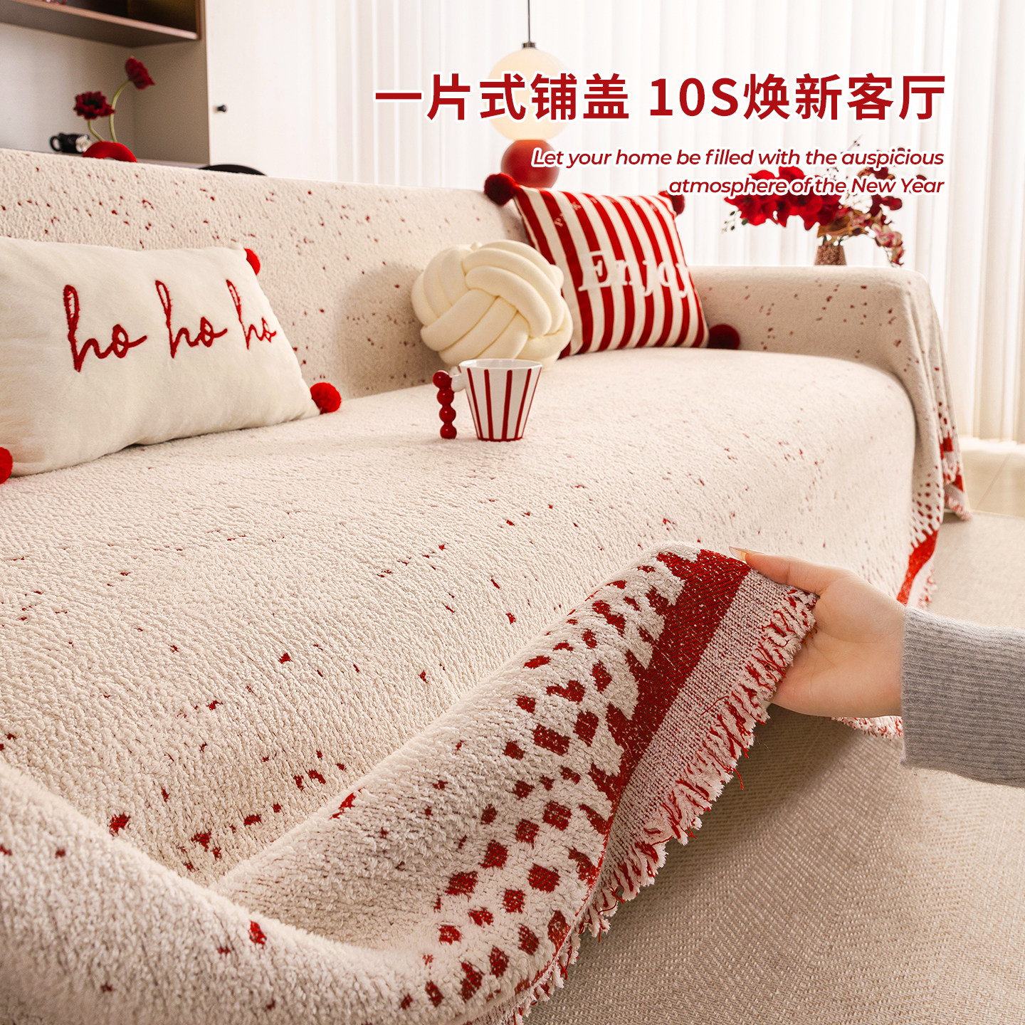 红色新年喜庆一整张全盖毛绒沙发巾盖布2026冬季新款结婚乔迁套罩