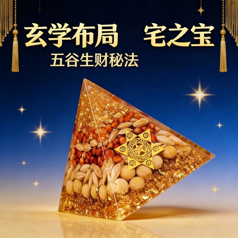 新中式财神殿水晶供奉台五谷丰登金字塔摆件国学装饰品家居摆件