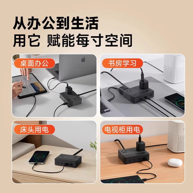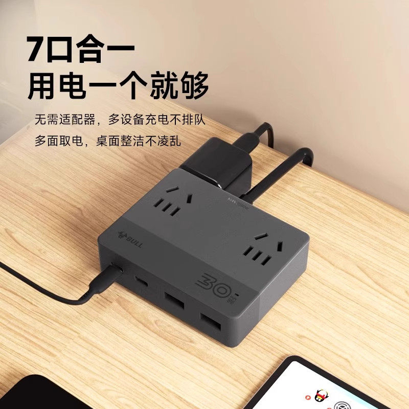 公牛魔方插座可爬墙插排固定器带USB快充充电器桌面延长线插线板