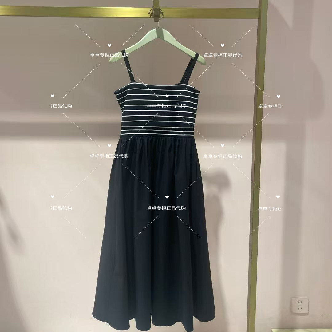 4折5+专柜2025新女夏条纹针织连衣裙露肩气质长裙2SN2080690现货
