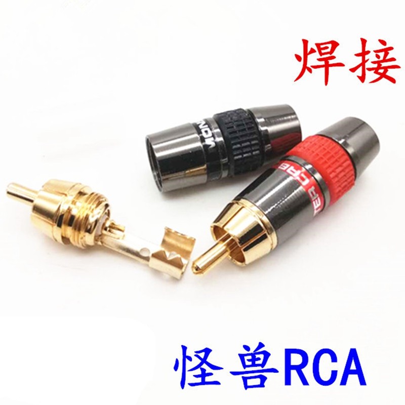 镀金焊接莲花插头AV头RCA公头av线音响箱线音频线连接线怪兽插头