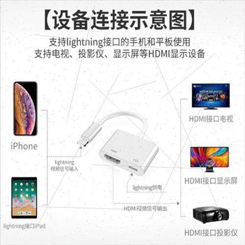 适用 Apple Lightning to HDMI HD Adapter Cable Cell Phone to