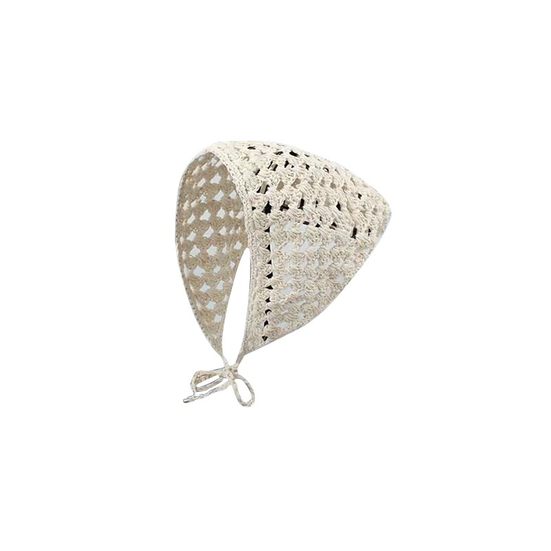 日系手工钩花头巾女纯色甜美ins法式三角巾包头网红针织发带头带