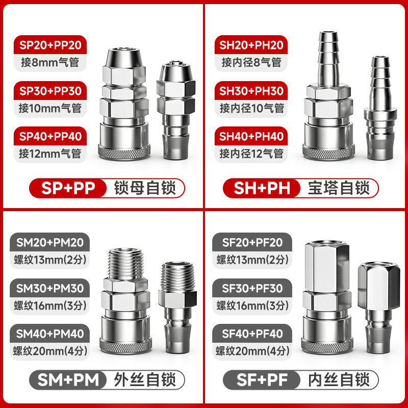 C式气动气管快速接头高压快插空压机气泵气路公母配件6/8/10/12mm
