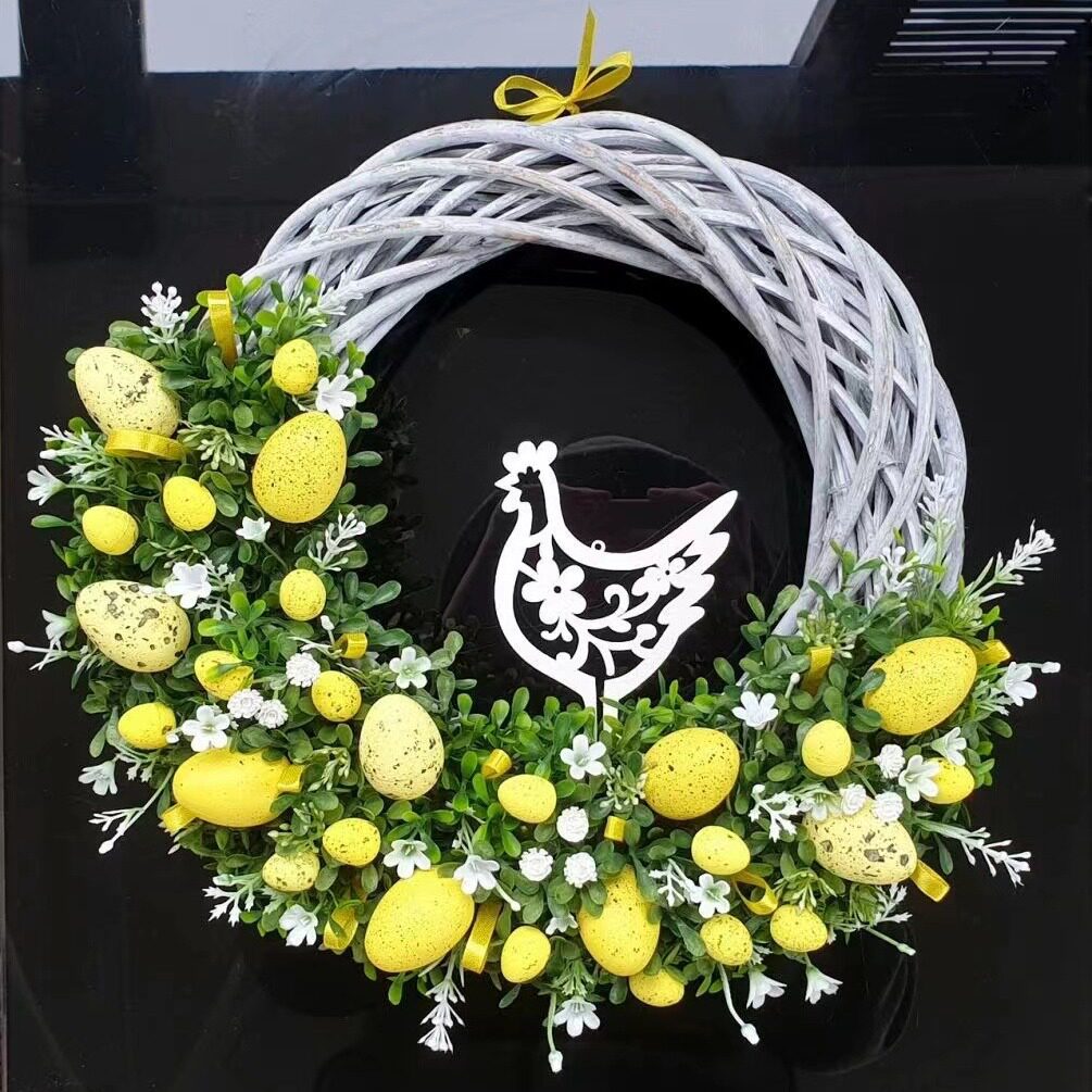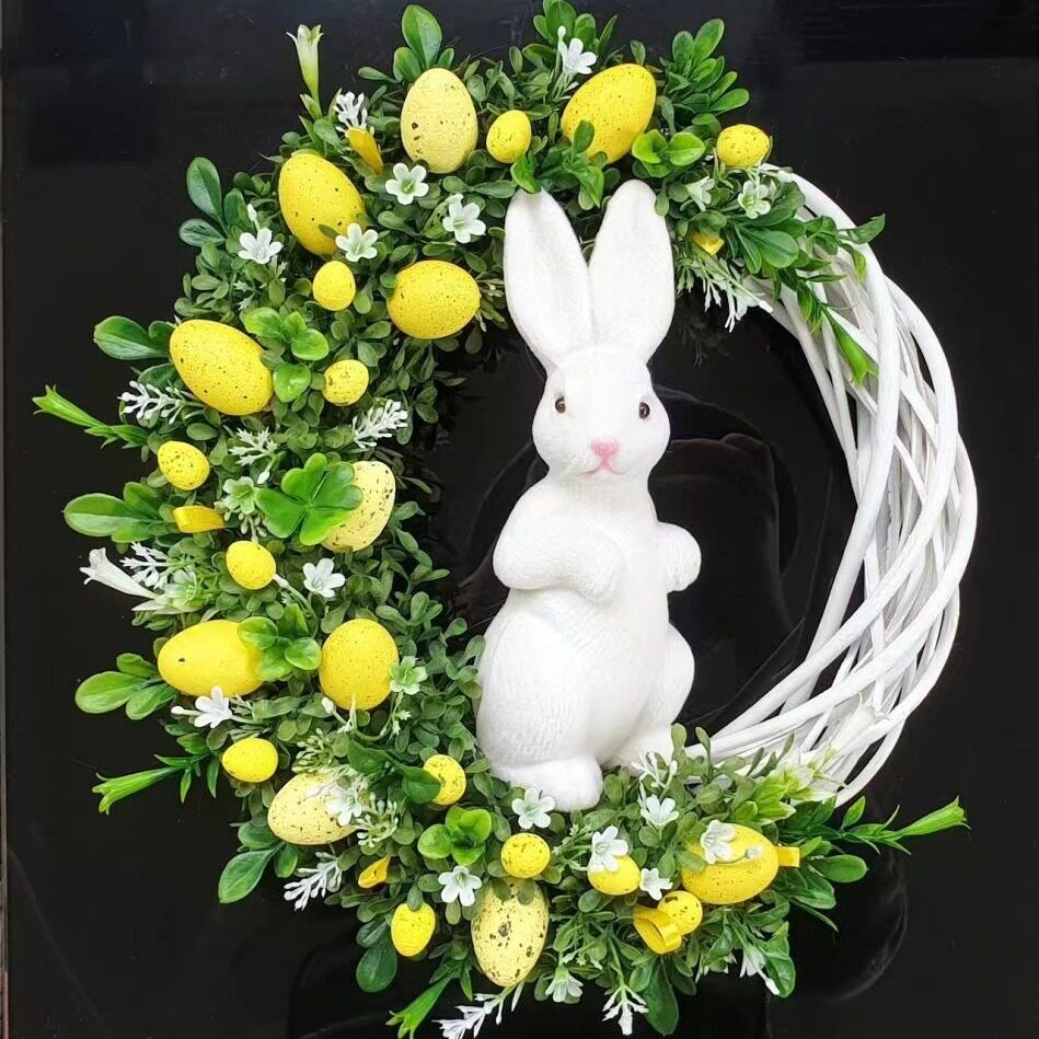 2025 Easter Decoration Bunny Wreath Decoration Rattan Ring F