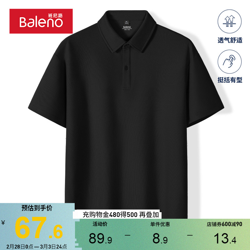 班尼路男士polo衫夏季纯色重磅简约上衣男装棉珠地有领短袖t恤男