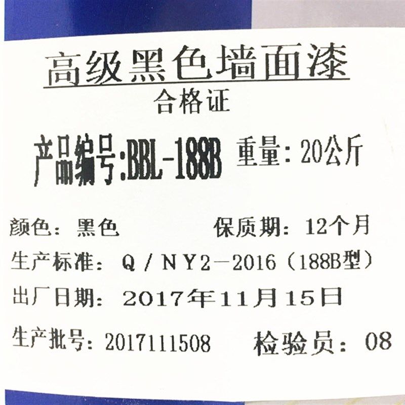 纯黑色墙面漆乳胶漆 黑色内墙漆环保 墙壁天花黑色油漆涂料20kg