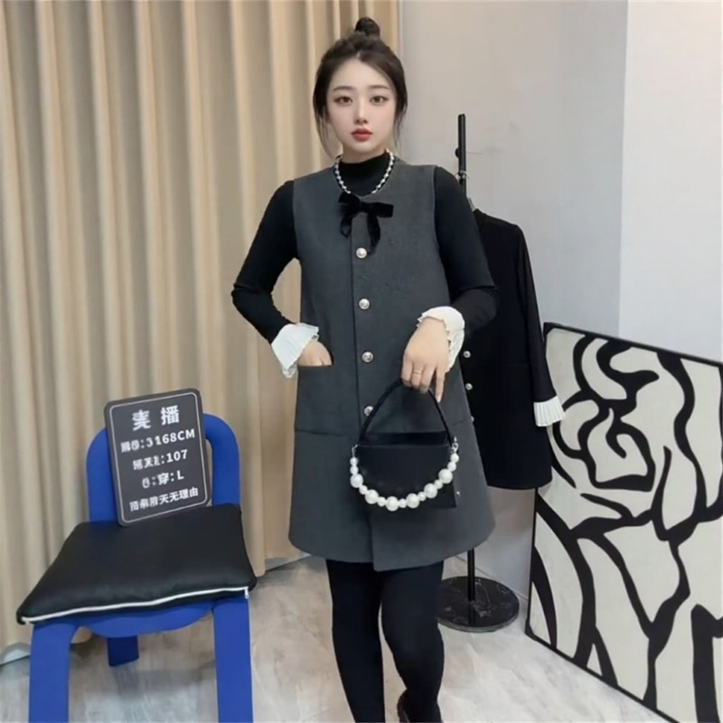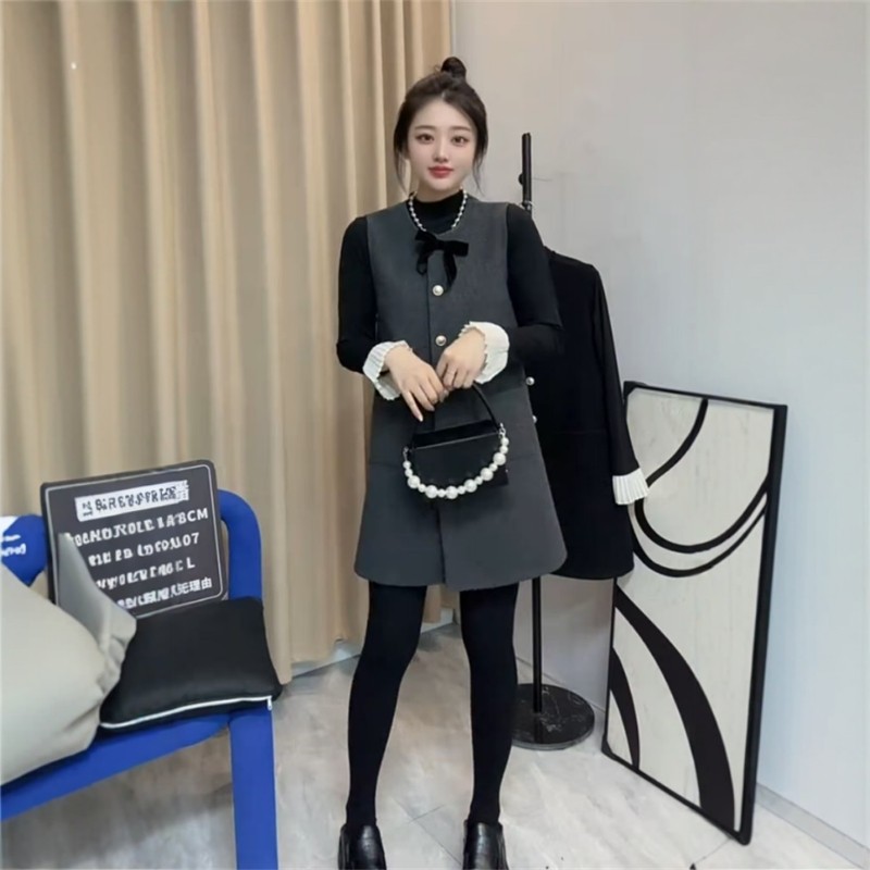 2025女士时尚套装单排扣马甲外套菲菲边拼接小衫洋气减龄两件套女