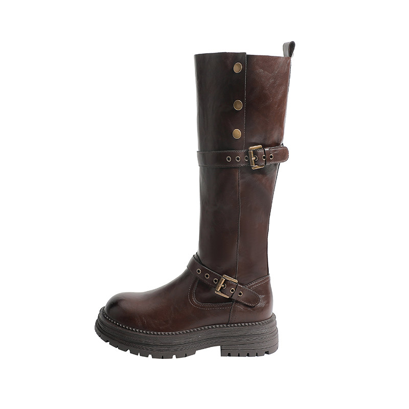 真皮~骄屿两穿复古厚底长筒靴2025新款不过膝美拉德骑士靴马丁靴