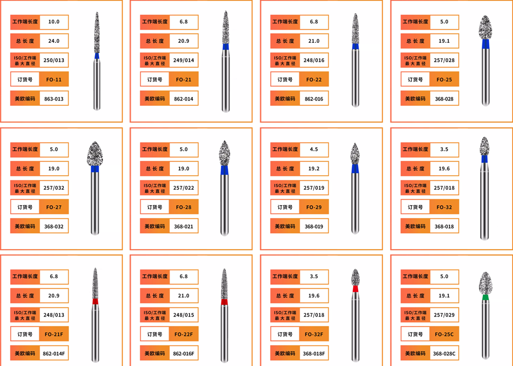 FO系列尖头火焰型高速金钢砂车针FO-25 27 29 32 FO-21F 22F 40EF