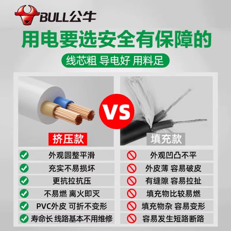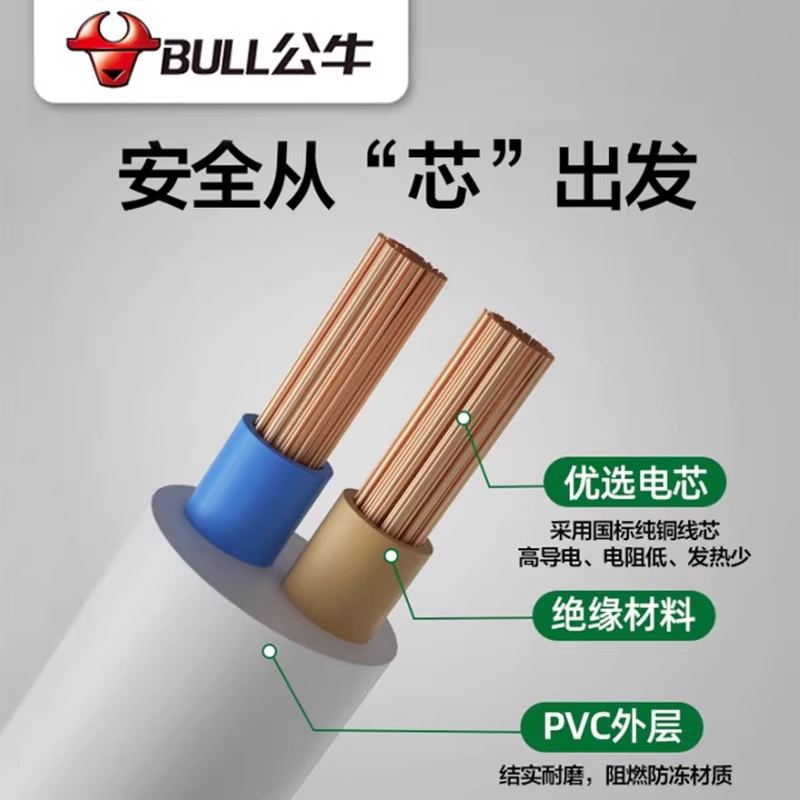 公牛电线家用软线电缆两芯电源线1.5/2.5平方国标护套线户外铜芯