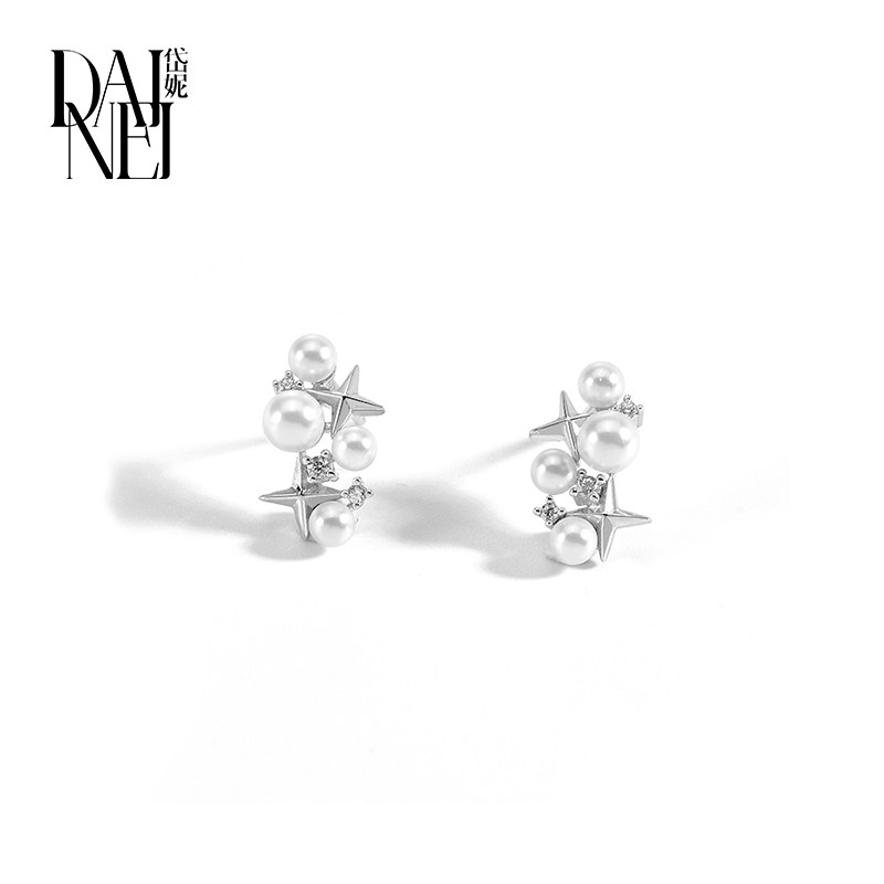 DAINEI岱妮流光繁星耳钉送女友礼物迷你耳饰时尚925银饰珍珠首饰