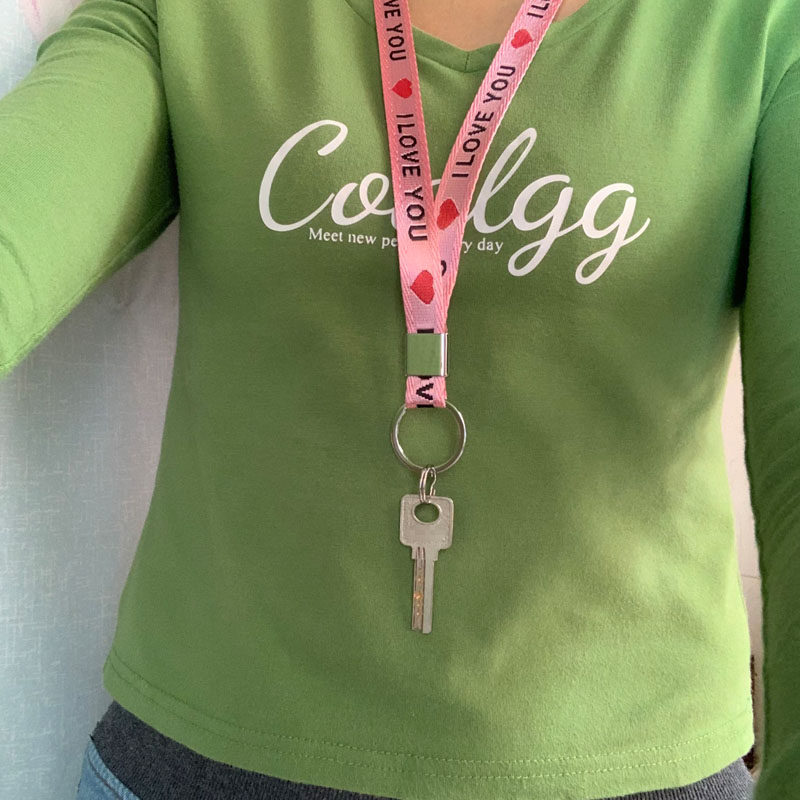 尼龙织带字母爱心挂脖防丢钥匙扣男女百搭小清新中小学生锁匙挂绳
