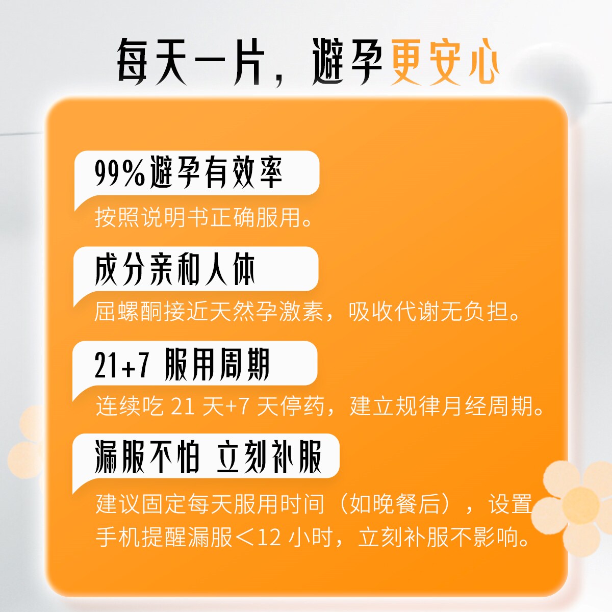 优思明屈螺酮炔雌醇片21片女性短效避孕药规律月经改善痤疮正品