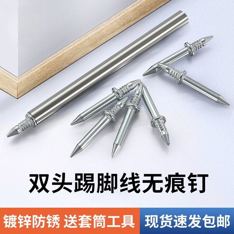 无痕双向反扣羊角钉踢脚线专用木工安装双头木板钉子隐形式高穿透