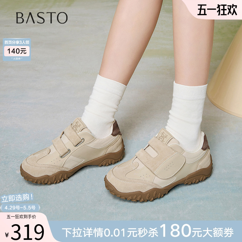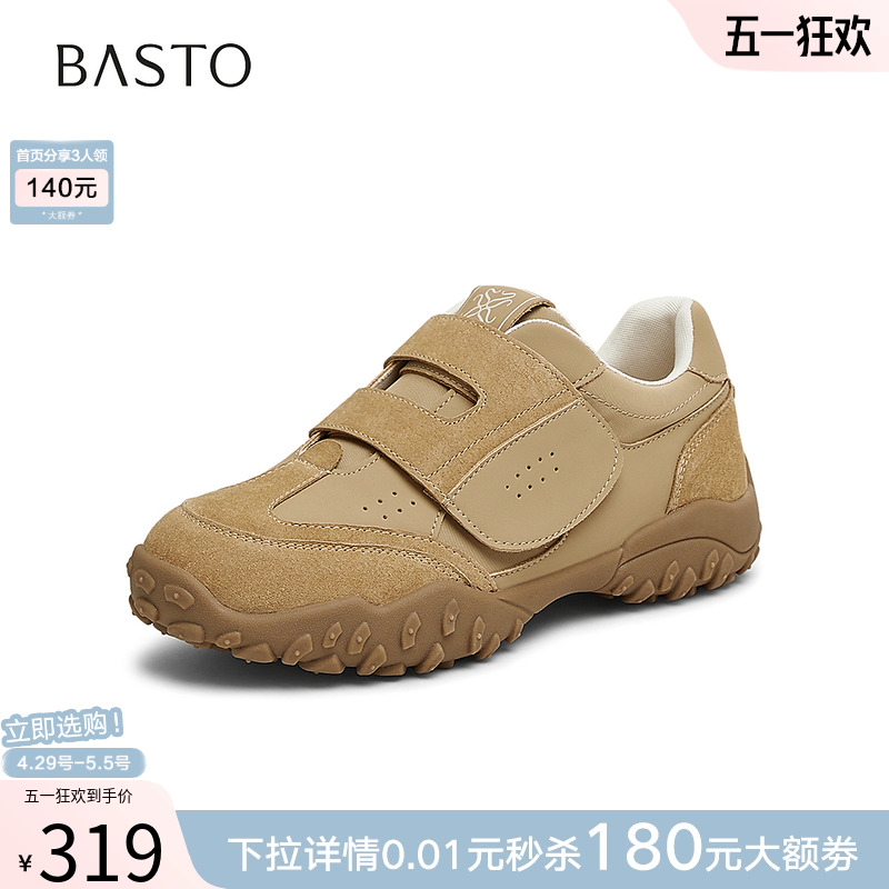 百思图2025春新款真皮厚底运动阿甘德训鞋女魔术贴休闲鞋A2071AM5