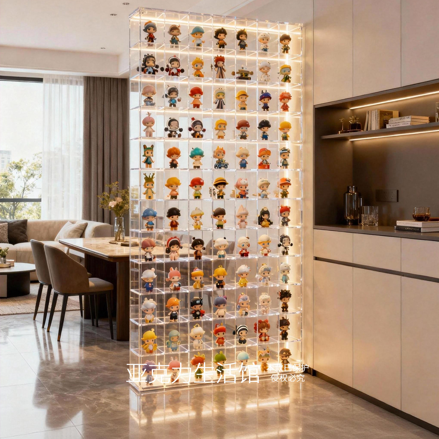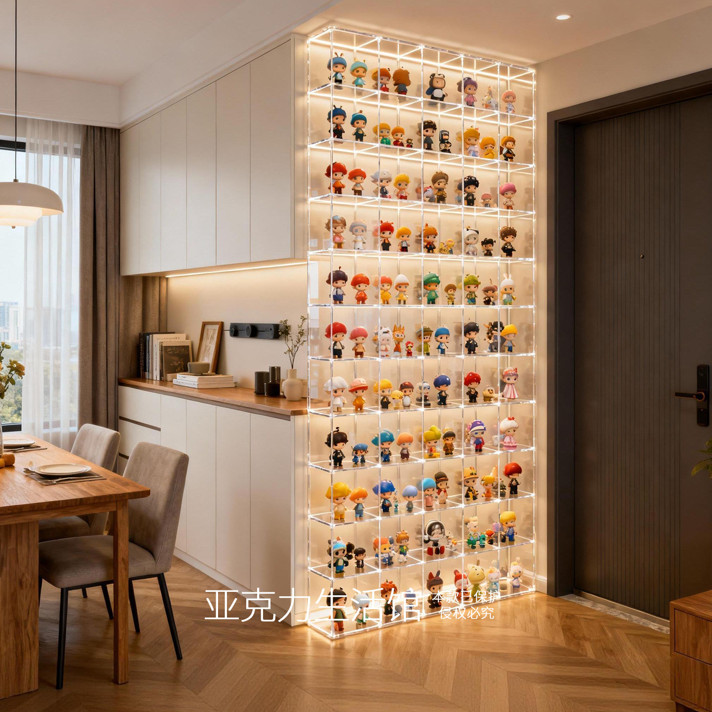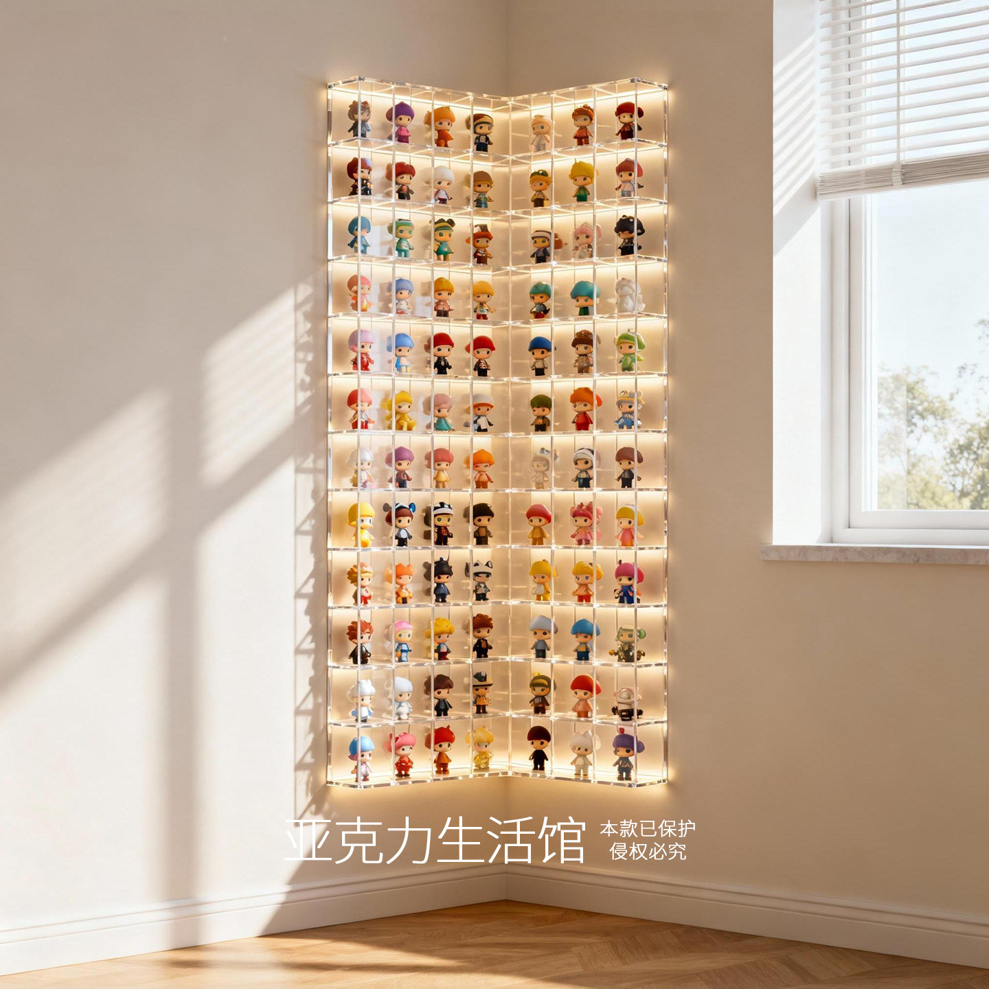 定制手办盲盒收纳展示柜带灯壁挂置物架转角盲盒展示架多层透明