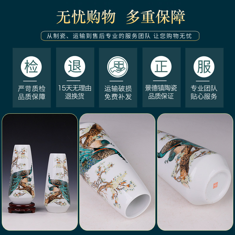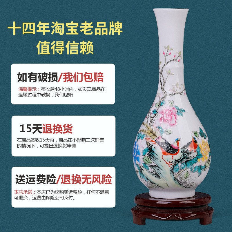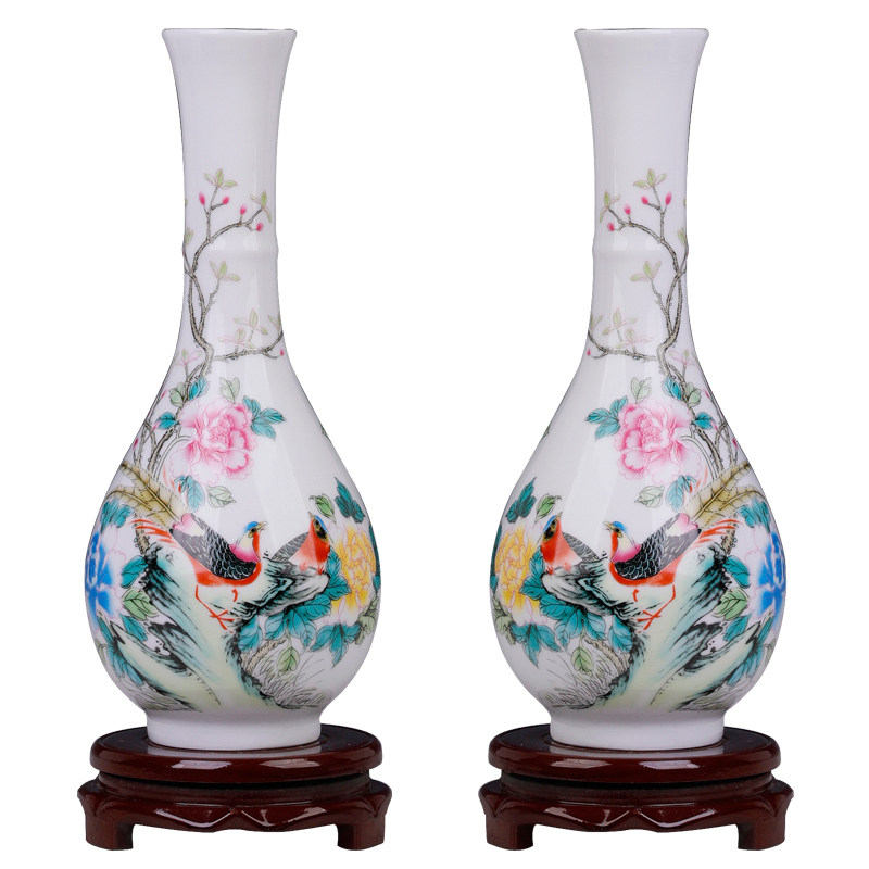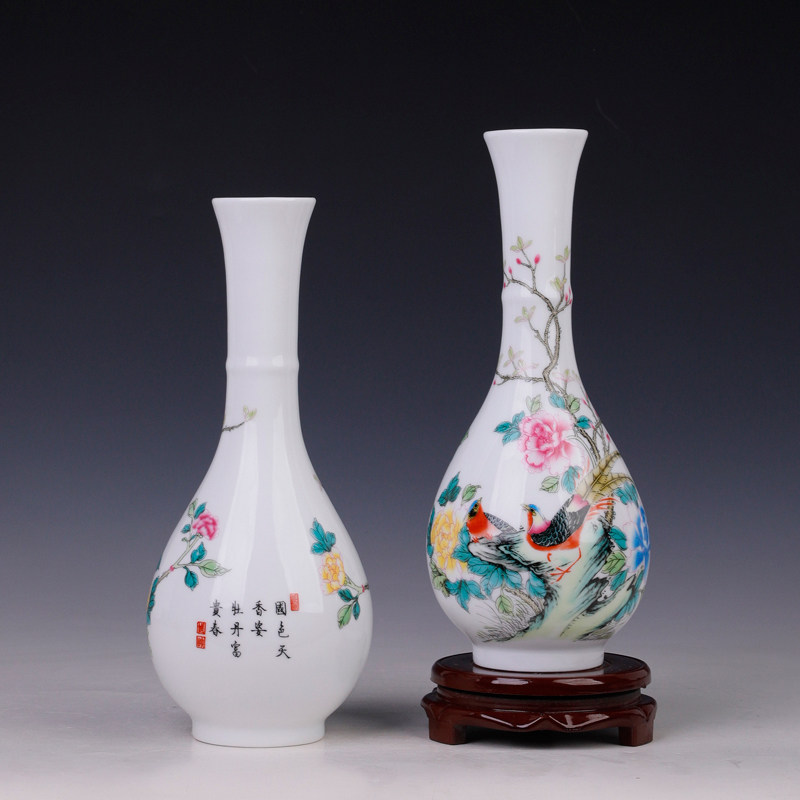 景德镇陶瓷器小花瓶家居装饰品摆件插花干花中式客厅博古架一对瓶