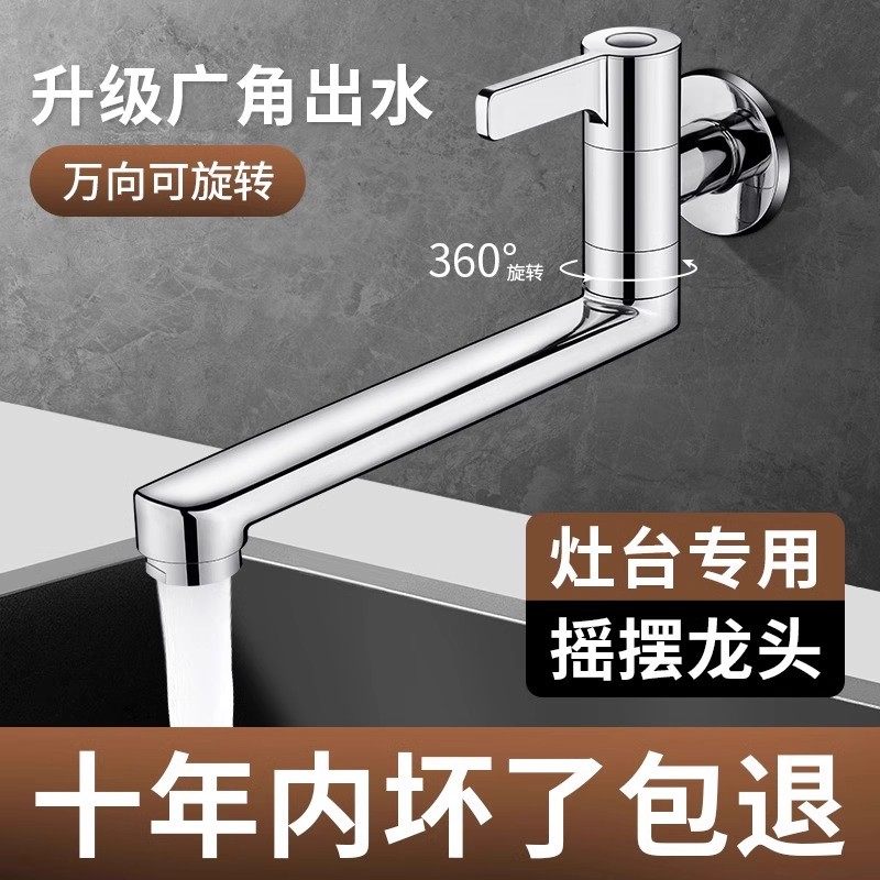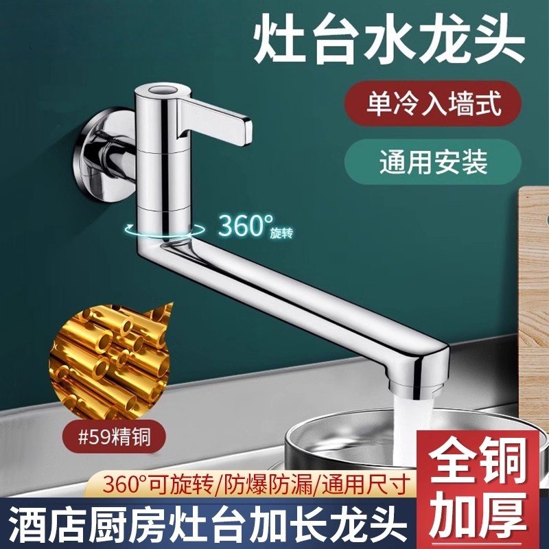 酒店厨房灶台专用水龙头全铜加长商用饭店单冷入墙式旋转摇摆龙头