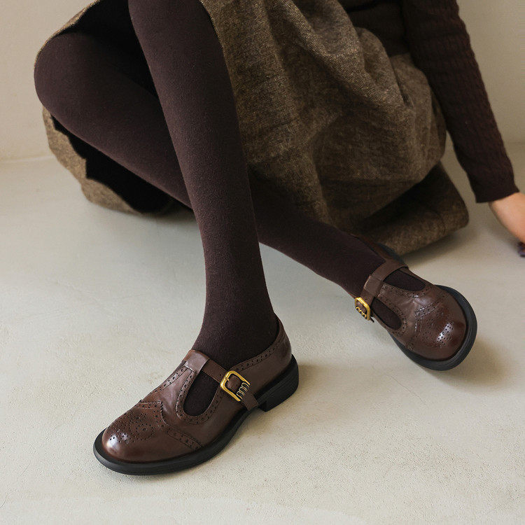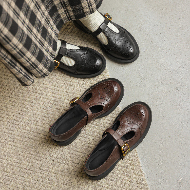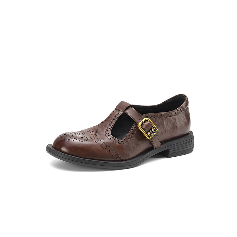 圆头粗跟橡胶胶粘工艺羊皮牛津鞋/布洛克鞋/德比鞋