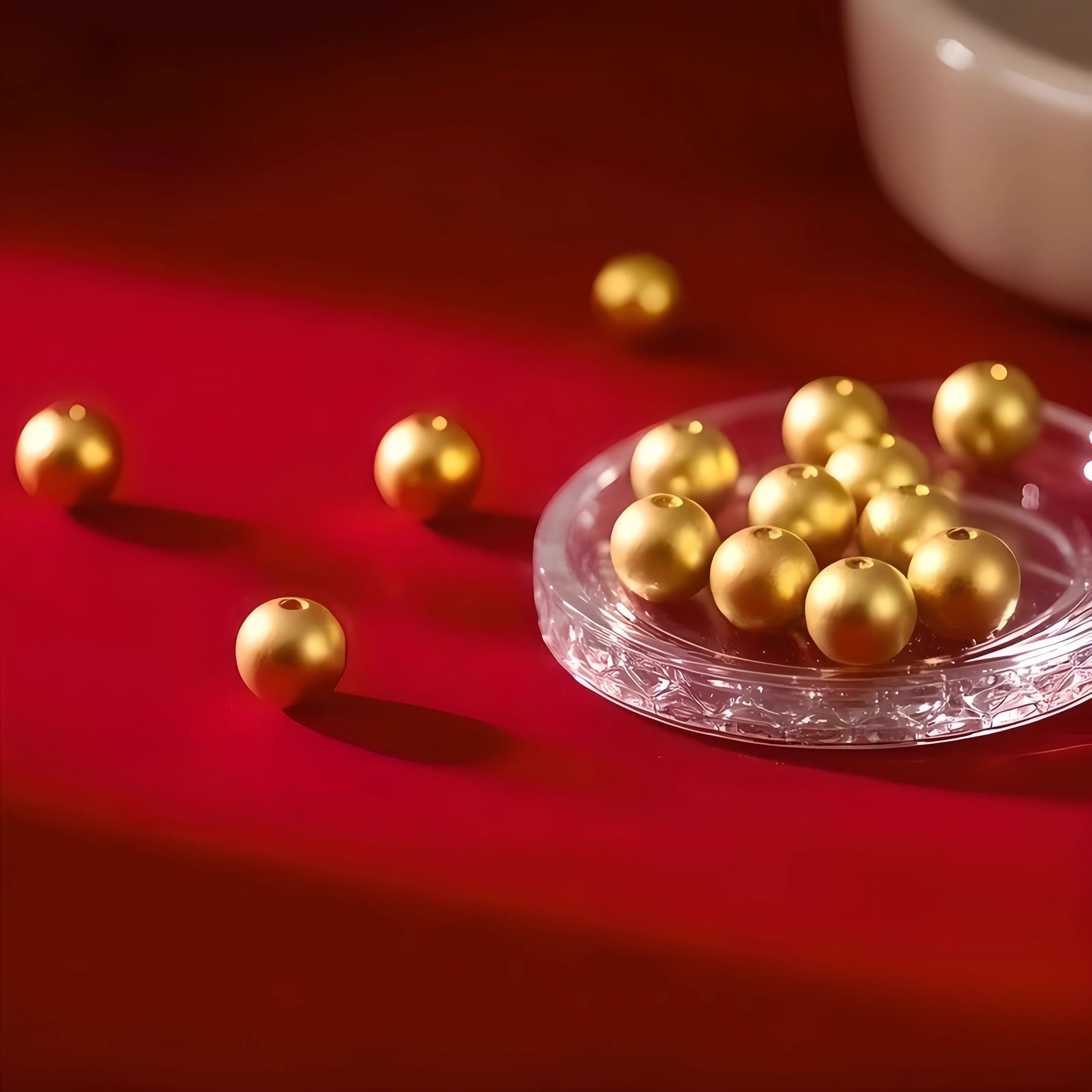 瑞财铺【B】古法金豆豆足金999黄金DIY配件散珠定制手链小金珠子