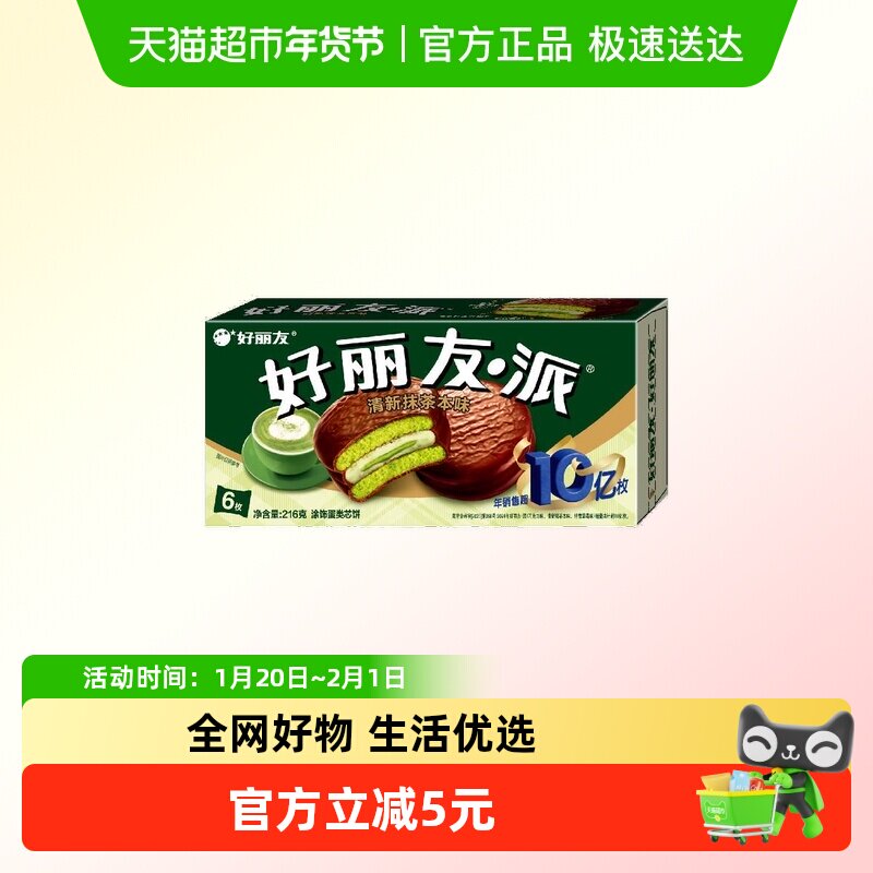 好丽友派清新抹茶本味6枚216g休闲小零食 传统西式糕点新口味食品