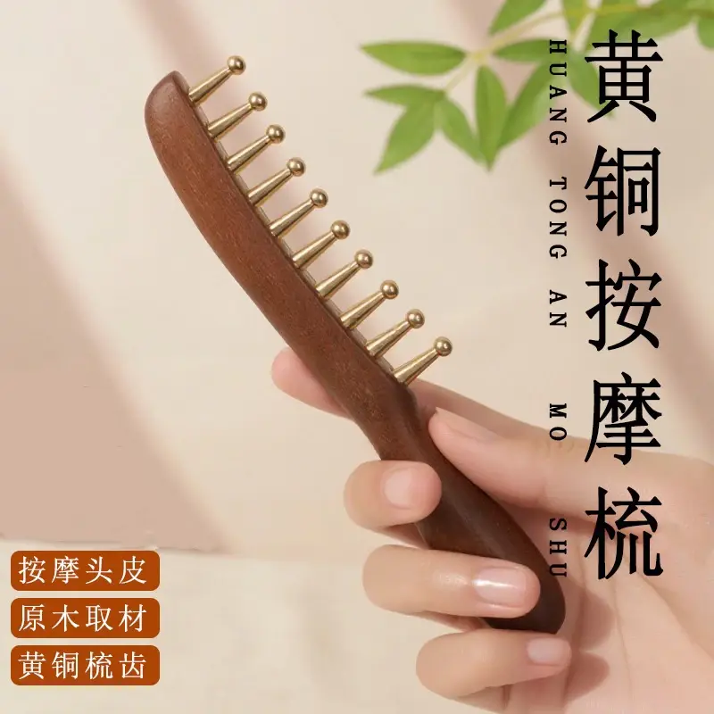 黄铜材质宽齿头皮按摩养生梳子经络疏通其它个护工具-XW
