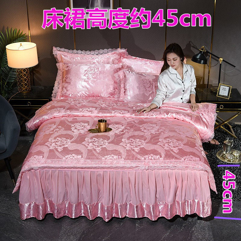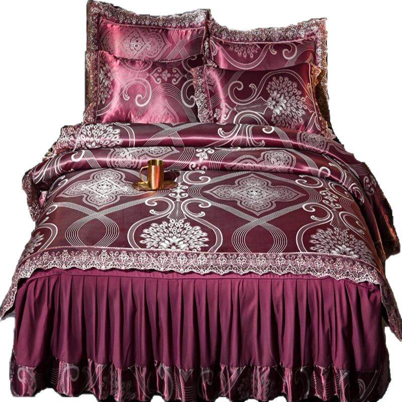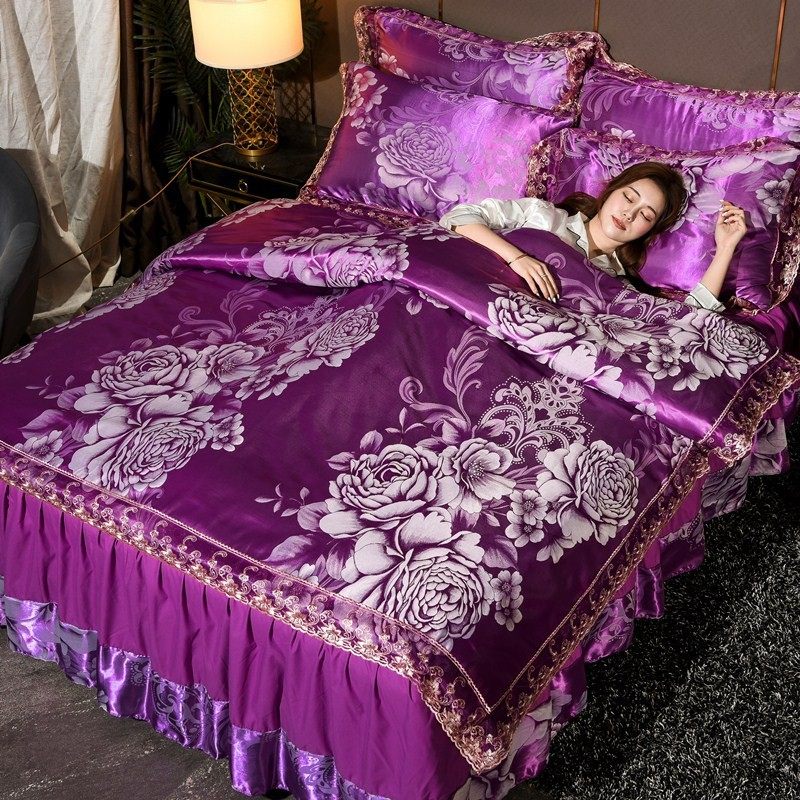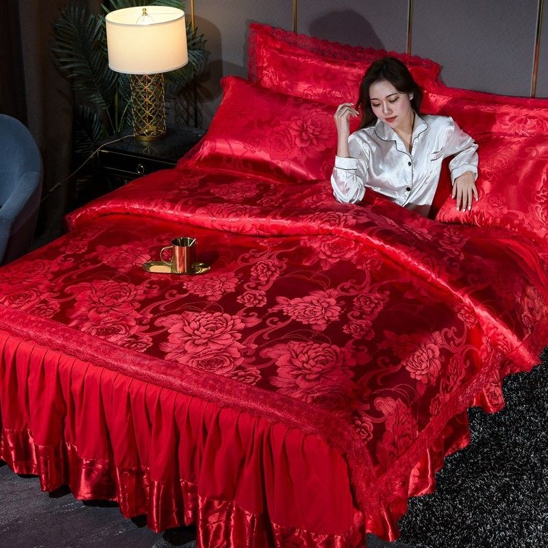 厂销高档纯棉贡缎提花四件套床裙款式床罩结婚庆床品套件欧式轻奢