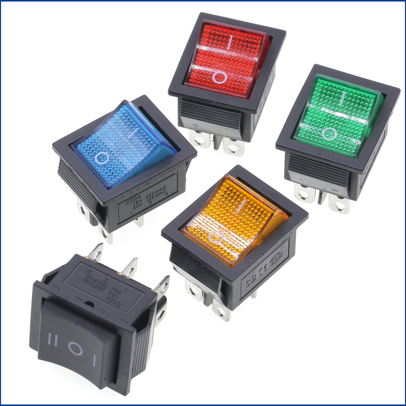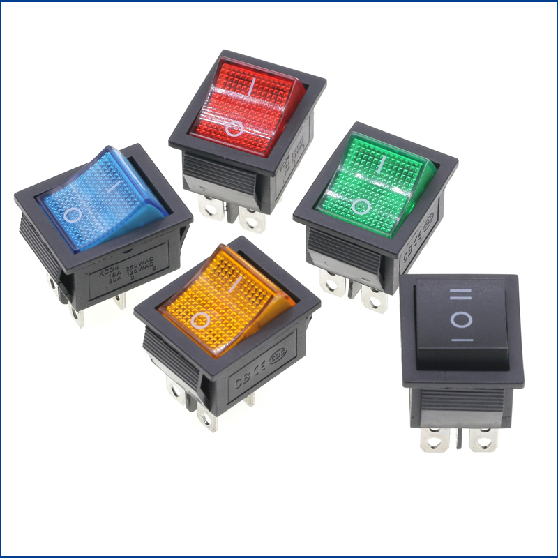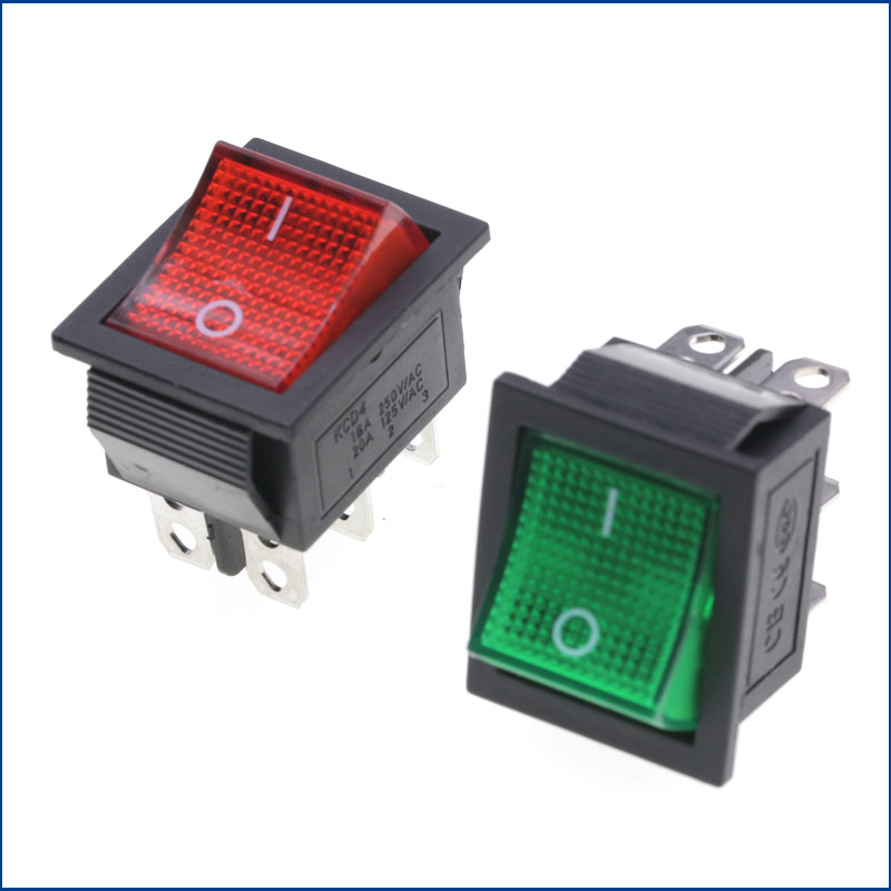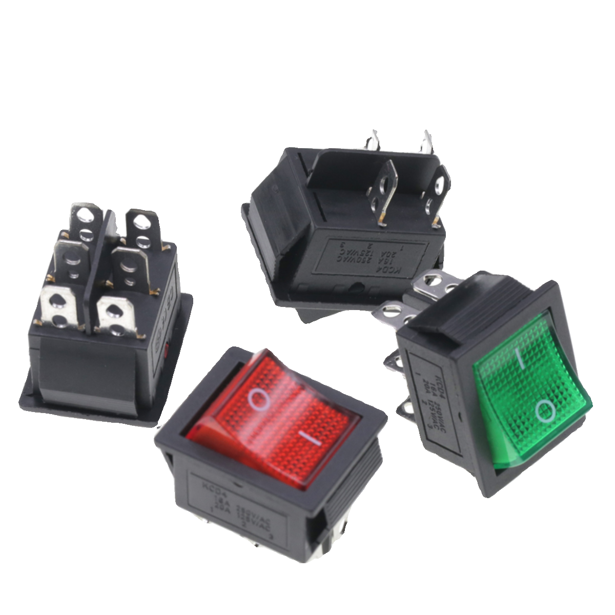 KCD4船型开关 船形开关 翘板电源按钮 4脚带灯 16A 250V 31x25mm