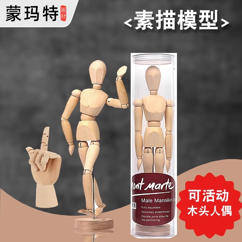 蒙玛特关节可动木偶人仿人体比例素描人偶模型手部美术生绘画摆件