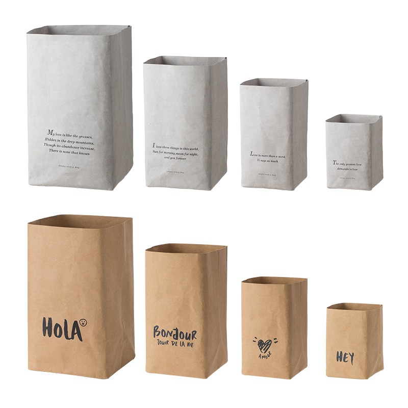 霜山牛皮纸收纳袋可水洗ins风花盆冰箱厨房水果食品包装环保纸袋