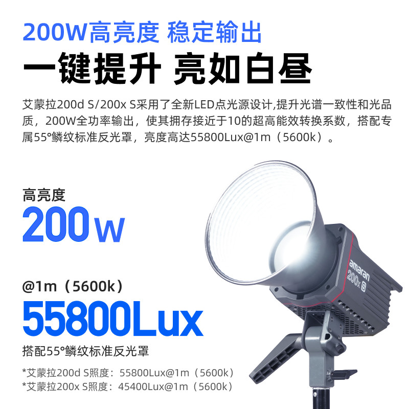 爱图仕 amaran艾蒙拉 200d 200x S 直播补光灯高亮美颜短视频LED摄影摄像影棚灯 绿幕服装抖音主播带货补光灯