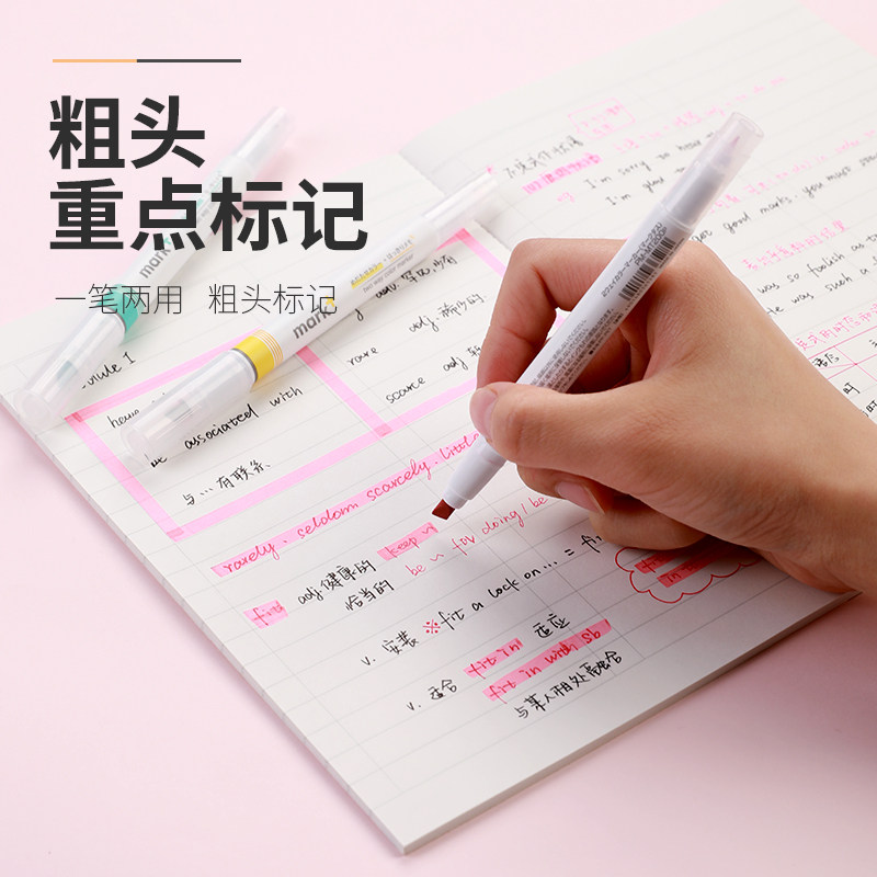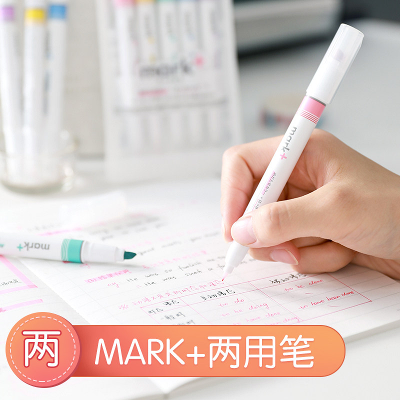kokuyo日本国誉mark+马克笔淡色系学生用双头荧光笔美术绘画记号笔划重点标记笔套装彩色手账diy日本文具大赏