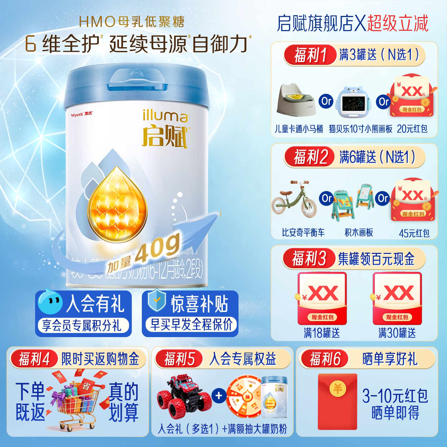 启赋蓝钻2段婴幼儿牛奶粉850g*1罐HMO二段幼儿配方奶粉官方旗舰店