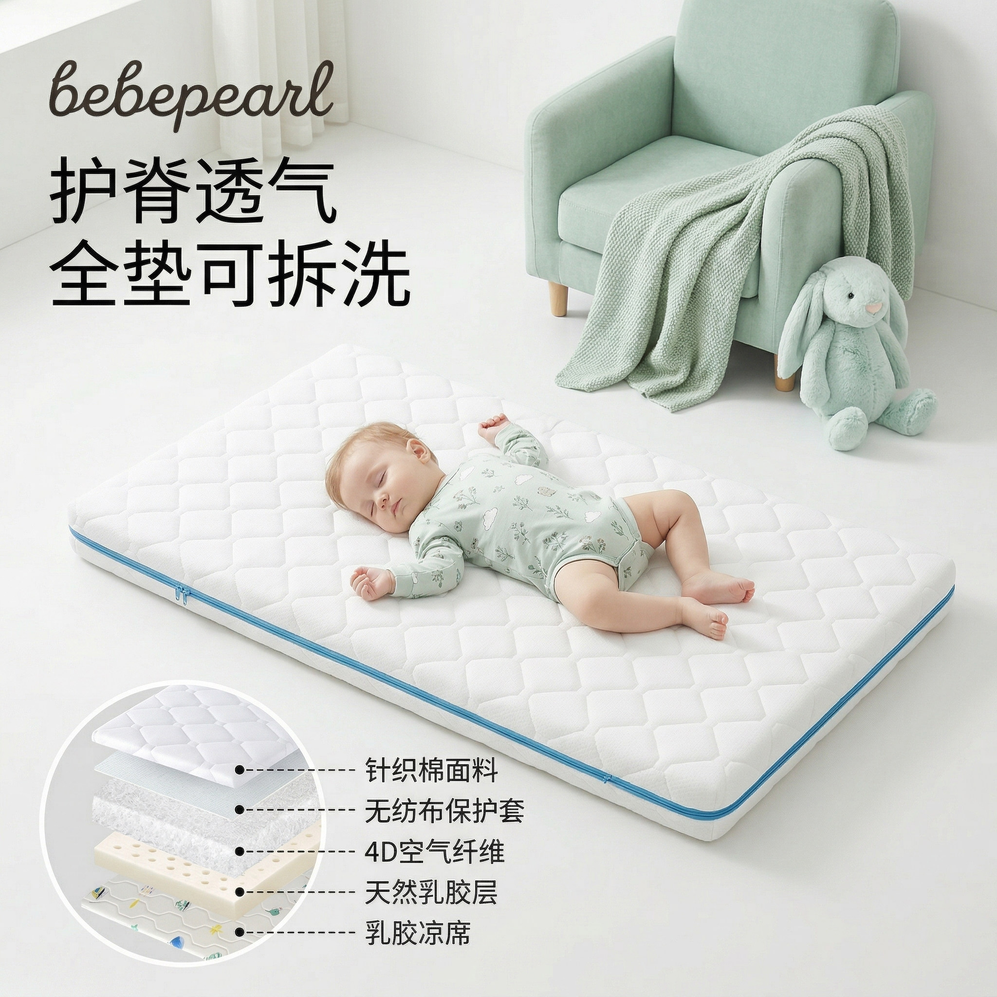 4d空气纤维婴儿床垫乳胶垫儿童幼儿园专用拼接床褥子宝宝垫子定制