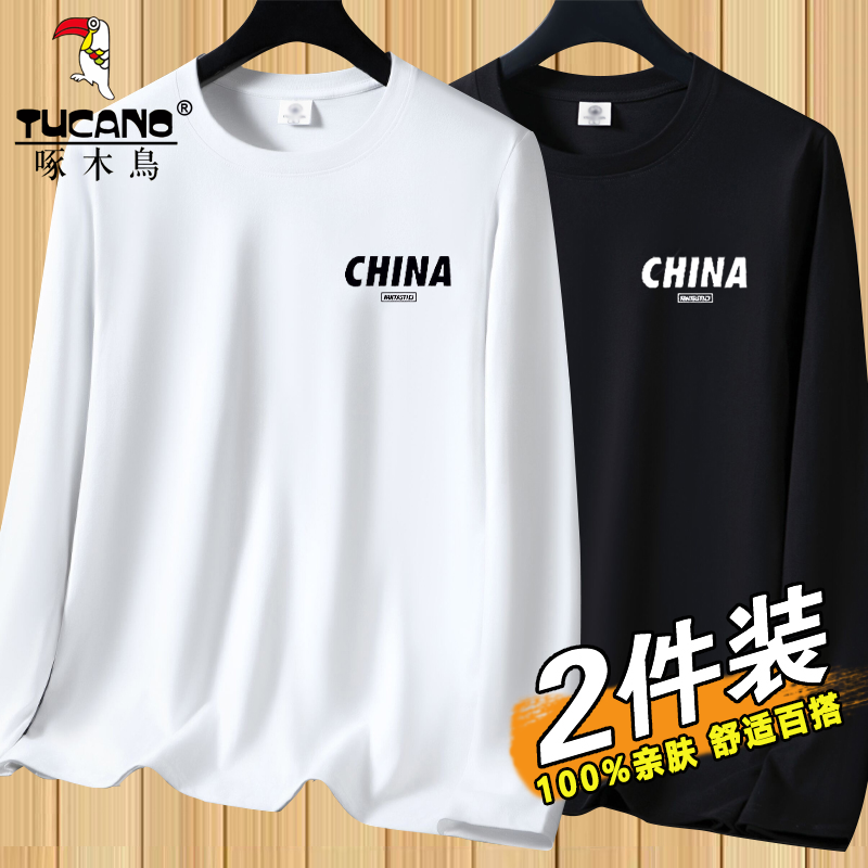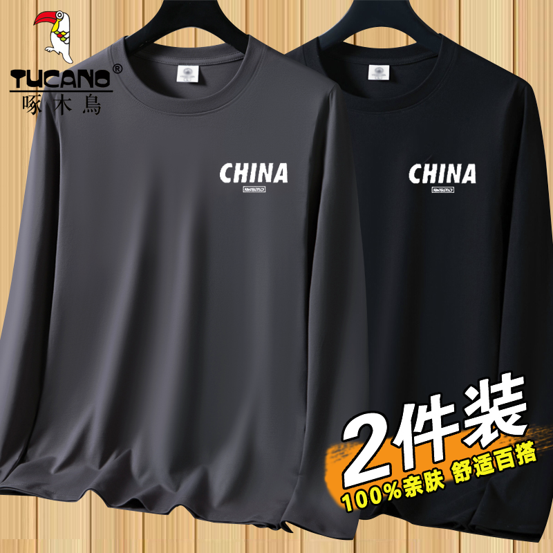 啄木鸟春秋季男士运动休闲长袖t恤薄款跑步上衣宽松大码圆领体恤