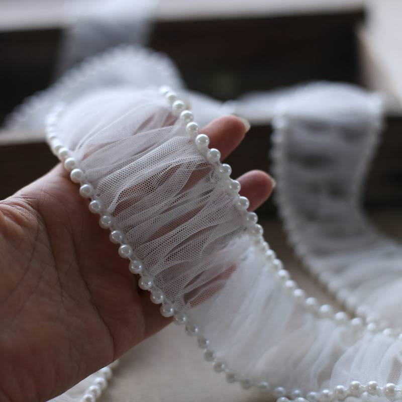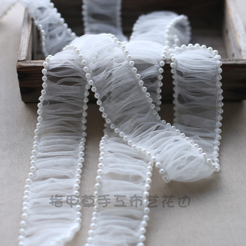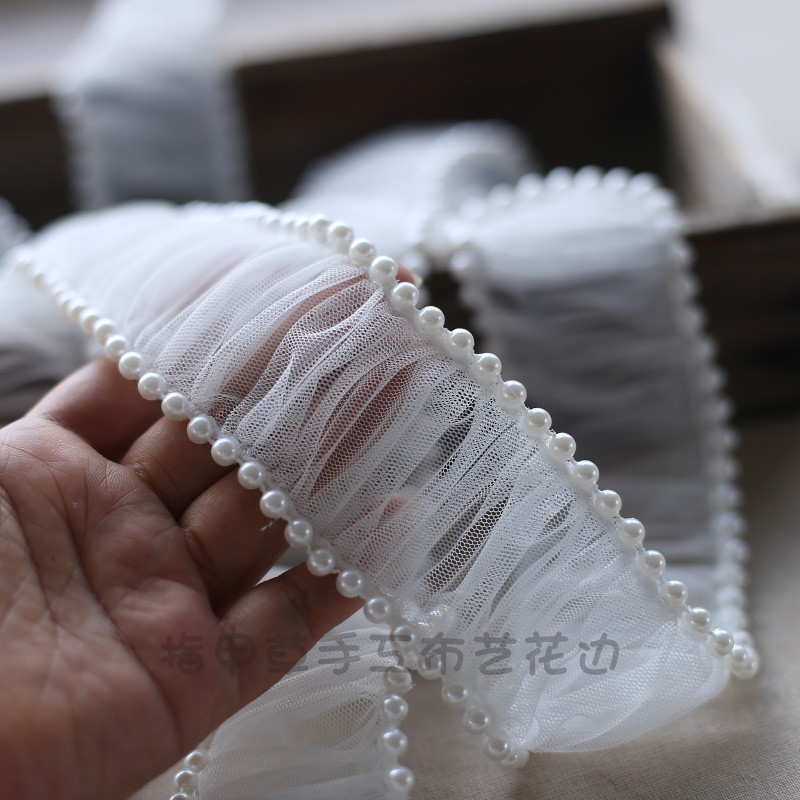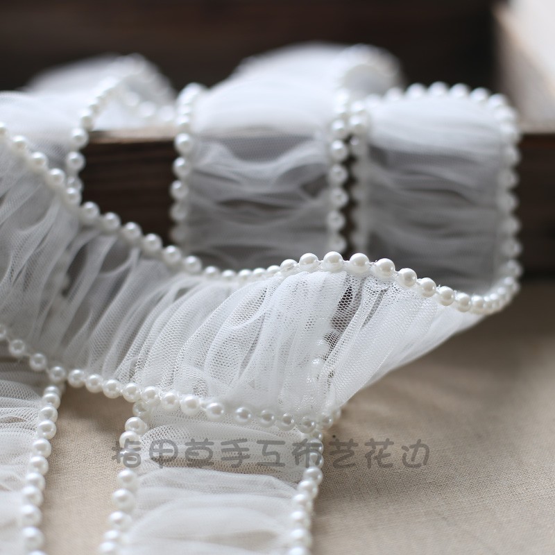 6CM网纱缩皱镶珠花边居家窗帘海棉坐垫镶边帽子边家居布艺装饰