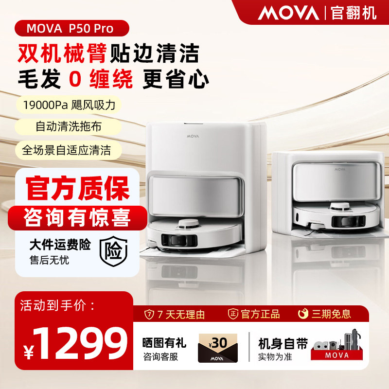 MOVA扫地机器人P50Pro双机械臂贴边清洁全自动清洗扫拖一体官翻机