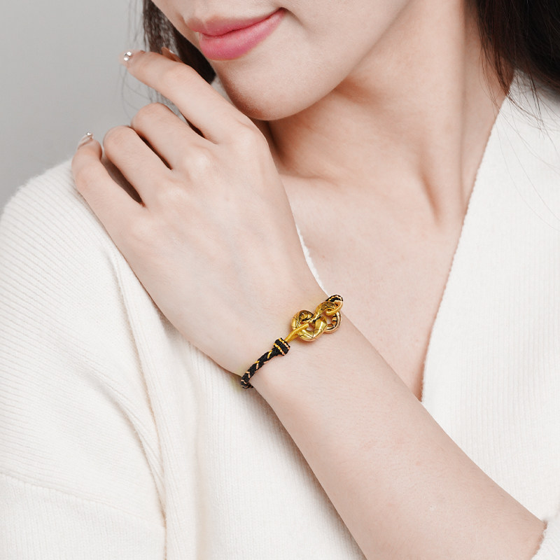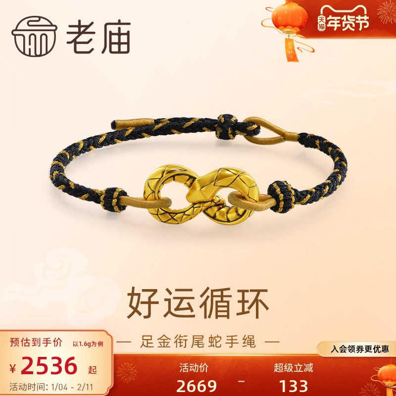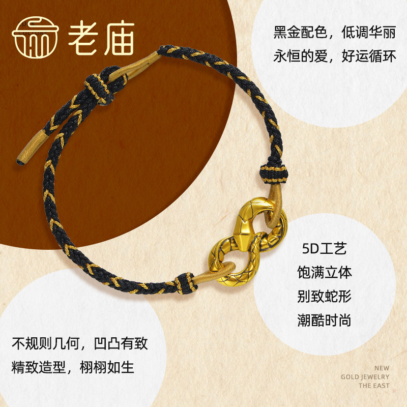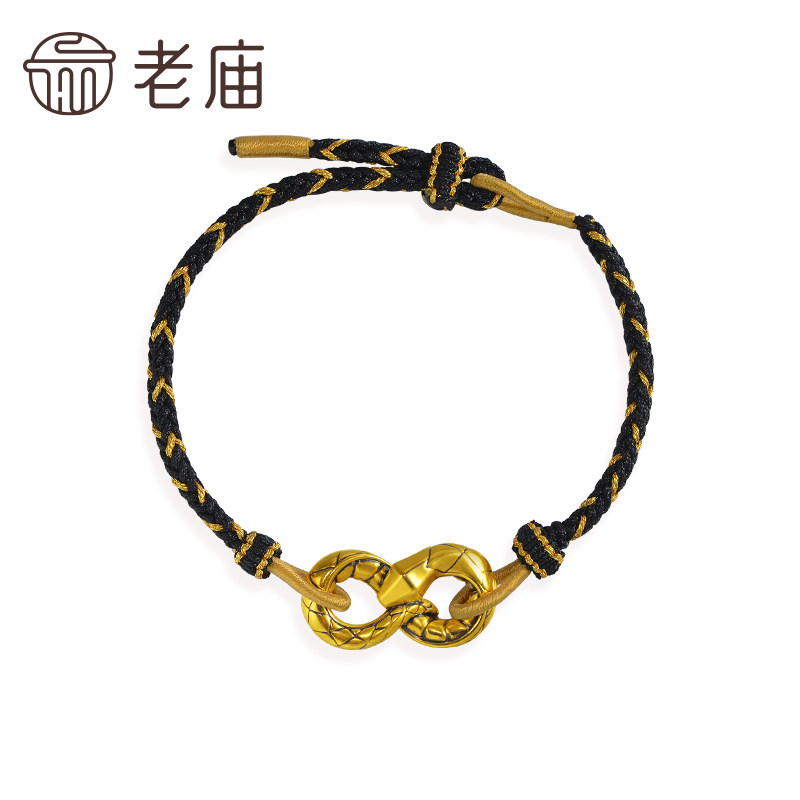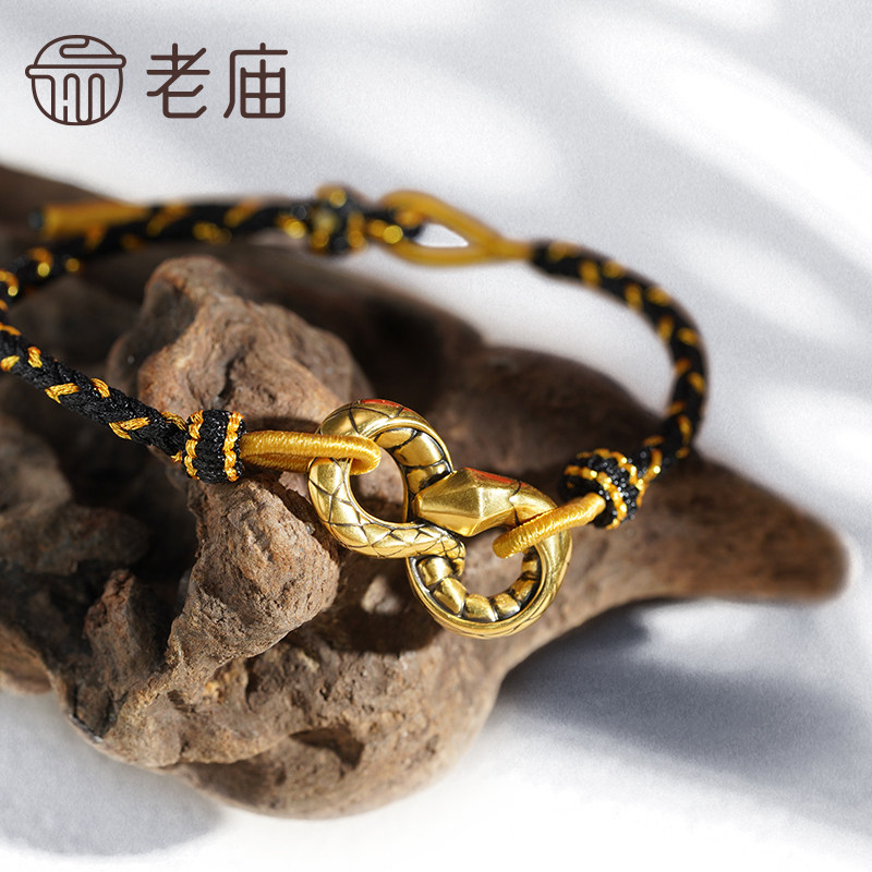 老庙黄金足金衔尾蛇手绳黑金5D工艺立体潮酷时尚男士中性官方正品