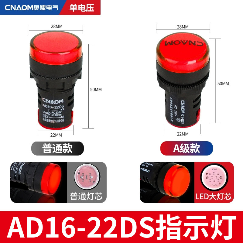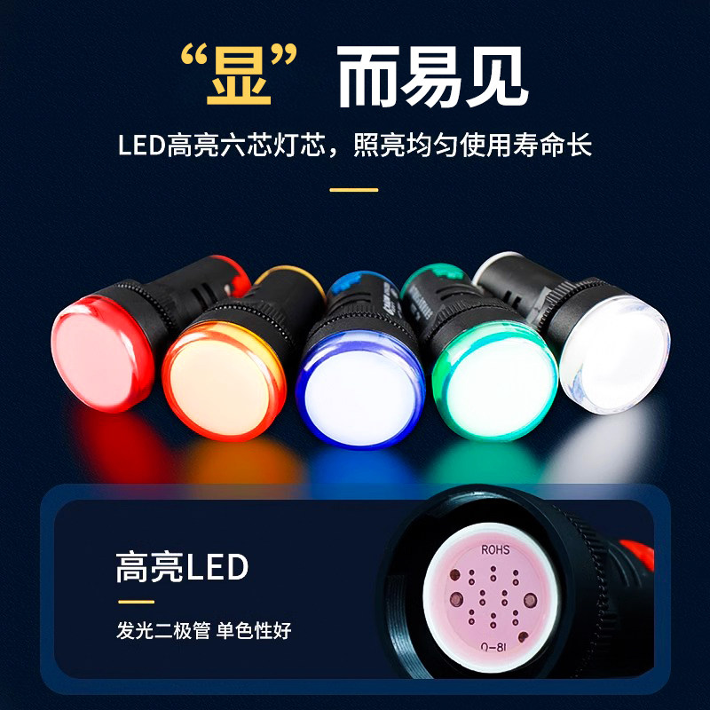 LED电源指示灯220v22DS配电箱22mm通用24v12v红AD16-22D/S信号灯