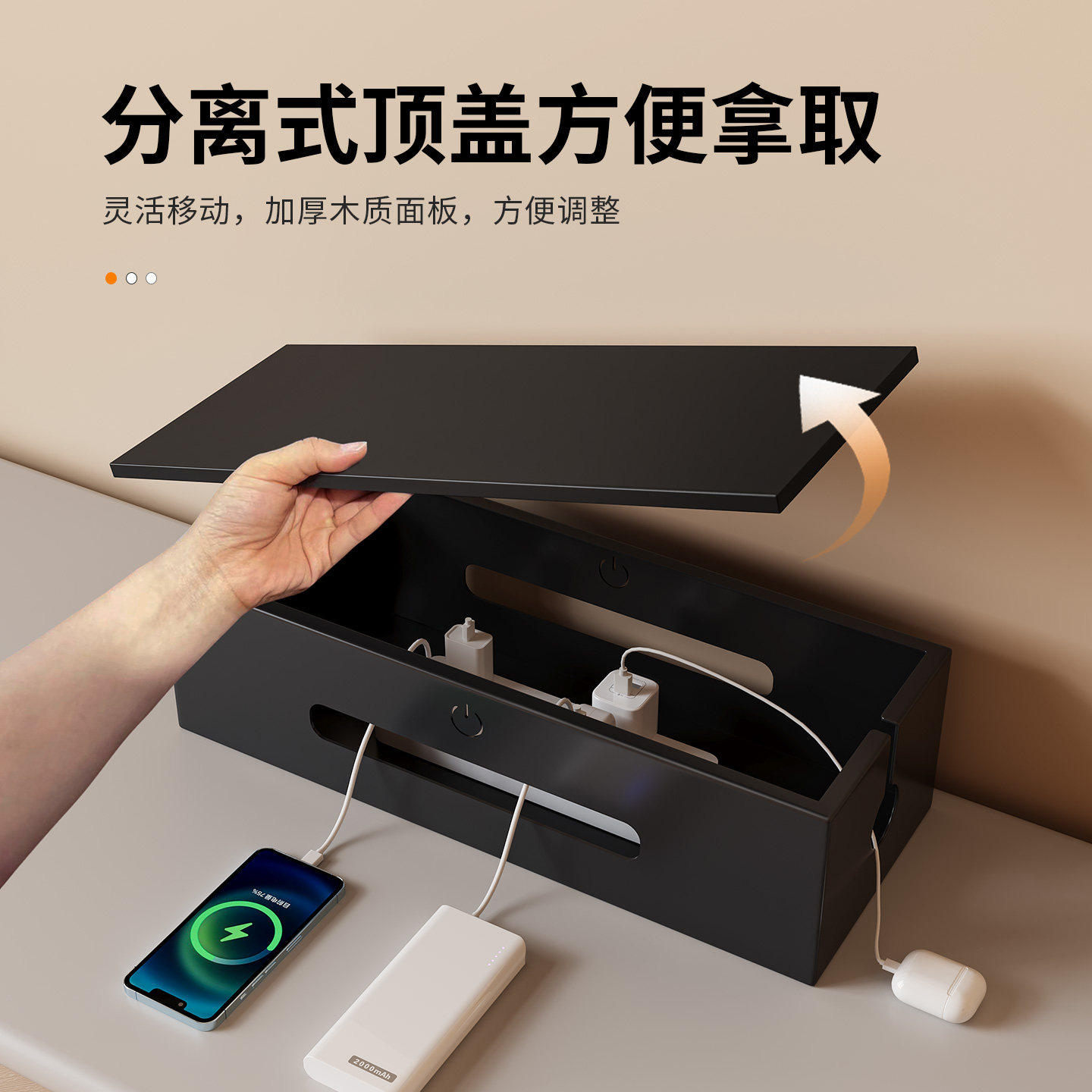 电源线收纳盒插排插座桌面集线器客厅数据线充电器整理盒桌面走线理线器多功能遮丑散热神器插线板装饰电线盒