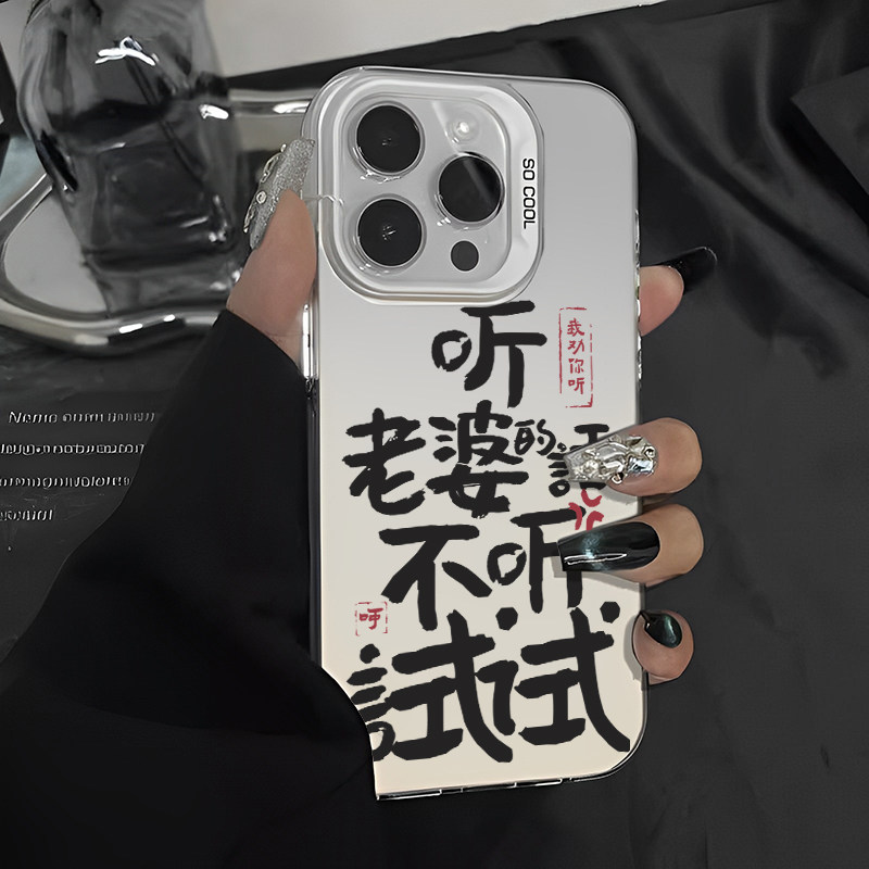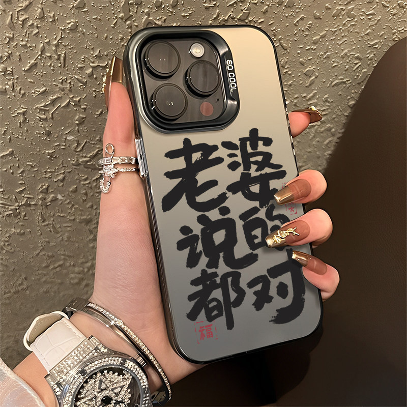 不爱老婆就没饭吃手机壳适用苹果17promax爱老婆会发财iphone16书法15文字14情侣13一加ace6荣耀400红米iqoo9