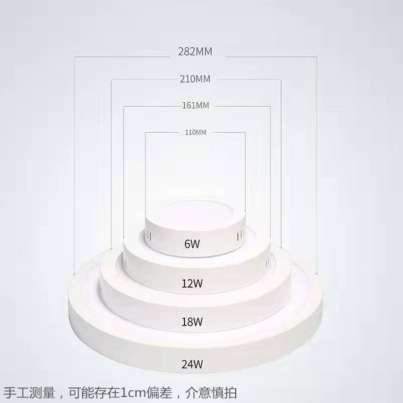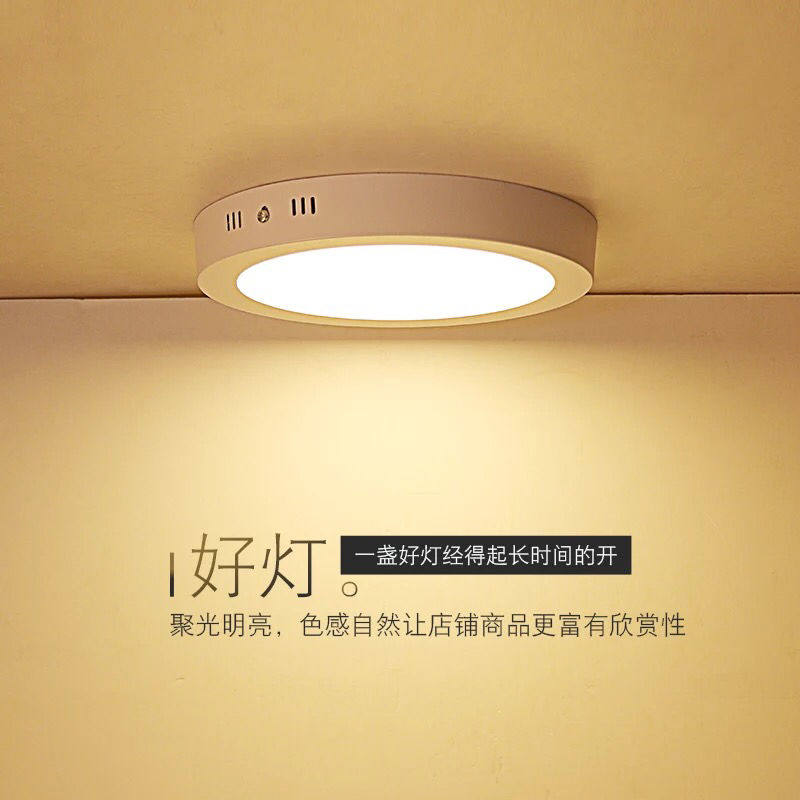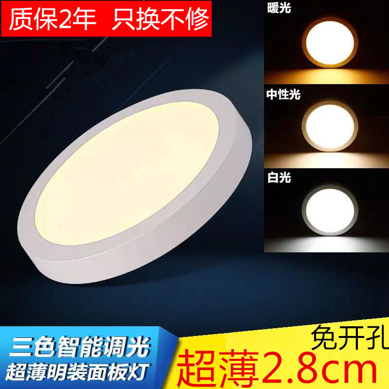 led超薄明装筒灯圆形三色阳台卧室过道玄关格栅免开孔吸顶灯中性