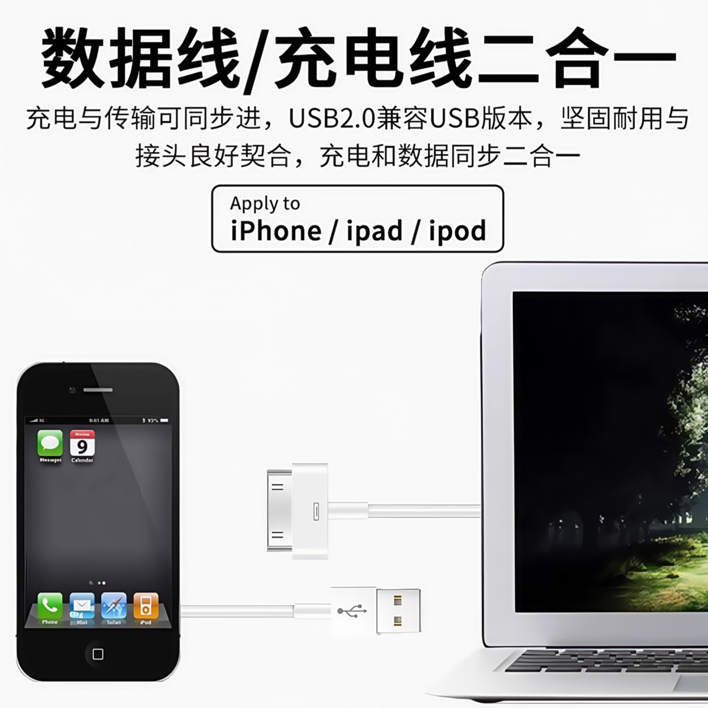 适用苹果4S充电线宽口老式充电头5S/6S/7P/8P充电器老式ipad2平板电脑iPad3快充套装a1395一代正品12W大头