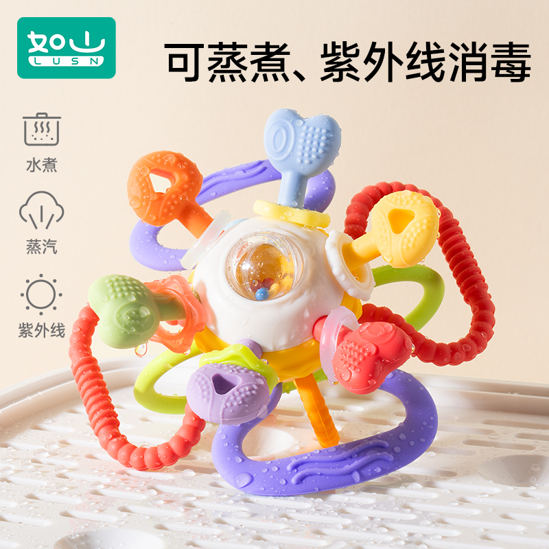 如山曼哈顿手抓球婴儿玩具硅胶可咬牙胶小宝宝3到6个月握磨0一1岁