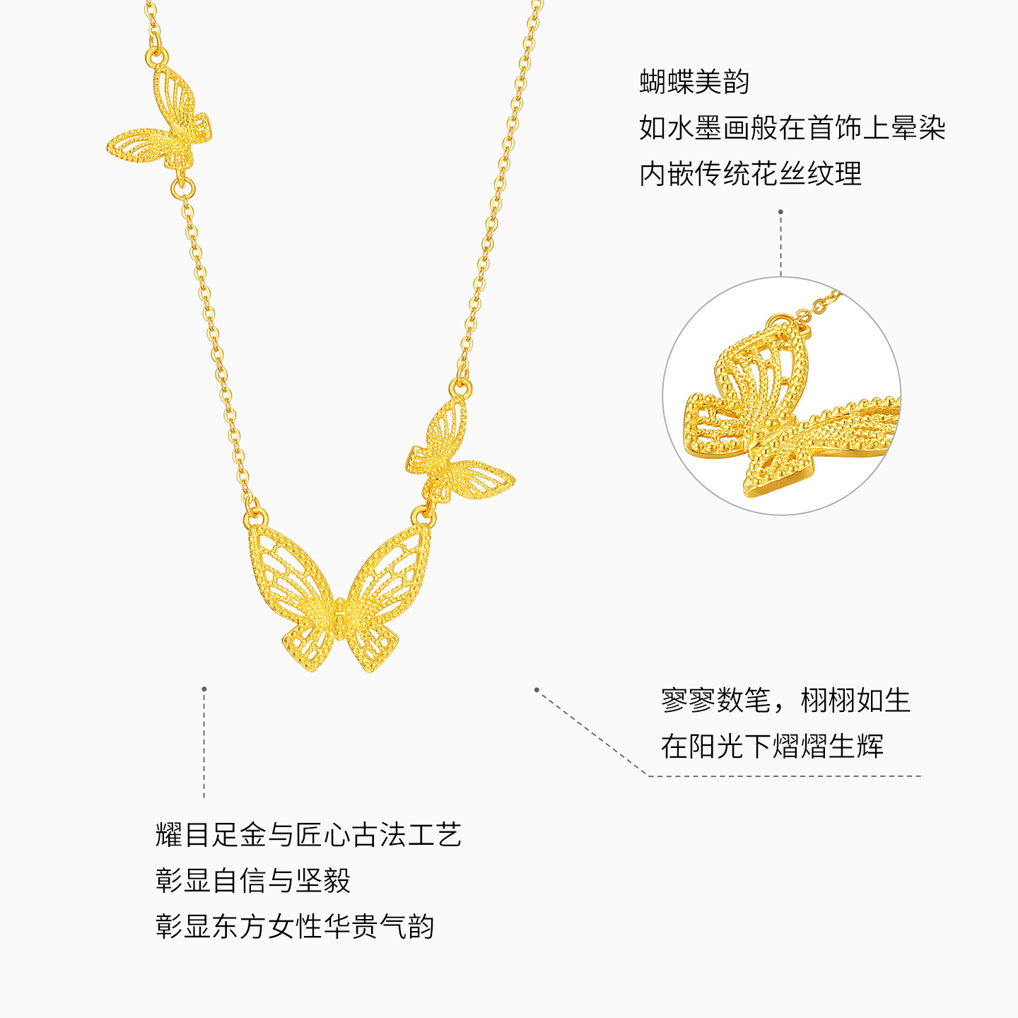 潮宏基花韵足金项链黄金坠链套链颈饰蝴蝶生日礼物女 计价