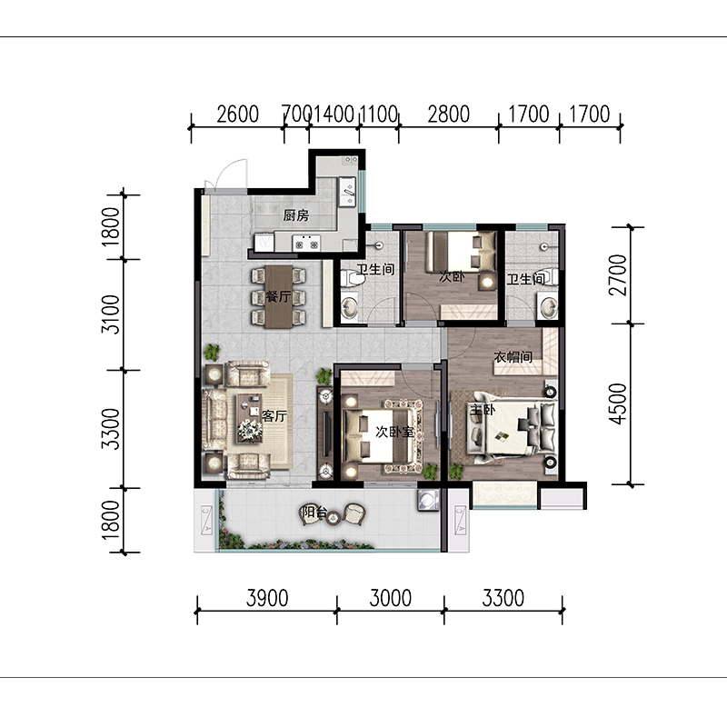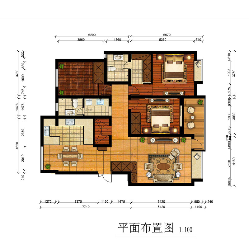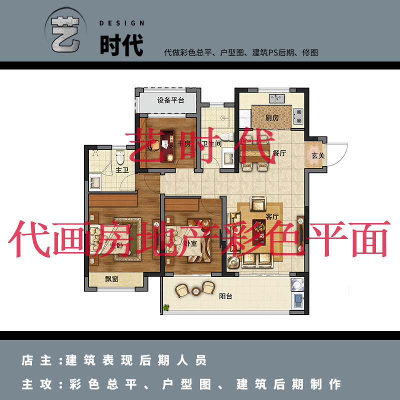 ps代画CAD户型彩色平图填色 室内平面图代做绘制房地产户型图渲染