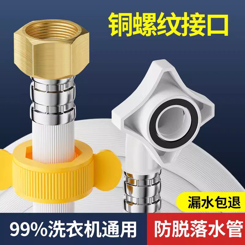 全自动洗衣机进水管软管加长4分接头铜头软管加长自动防脱落软管