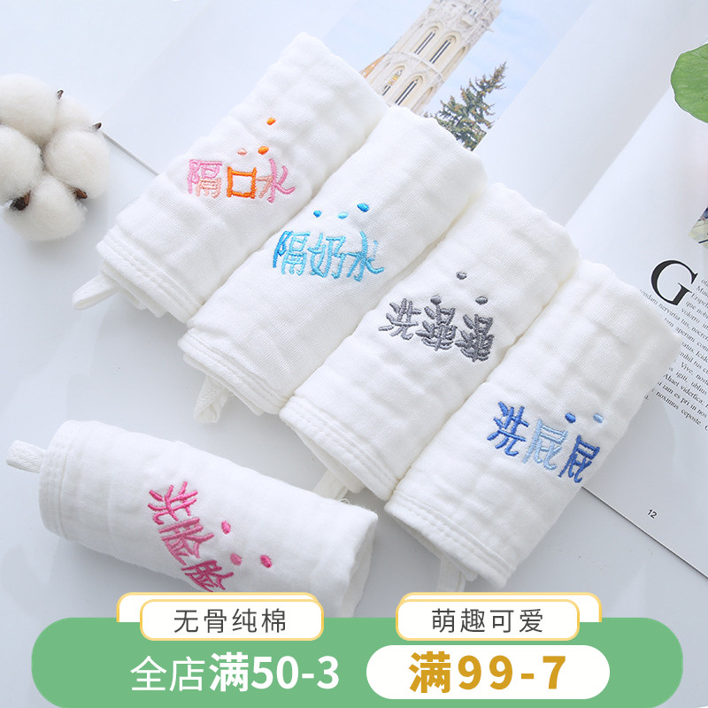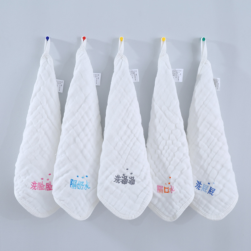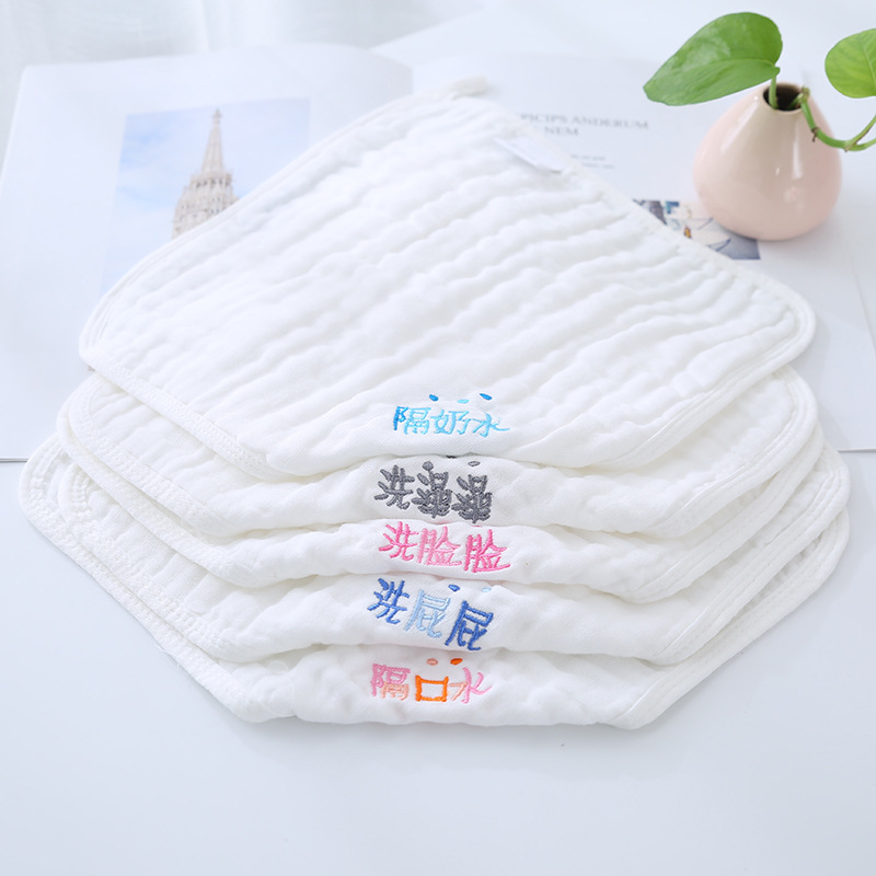 厂家婴儿毛巾刺绣口水巾纯棉儿童方巾 6层纱布宝宝用品洗脸巾手帕