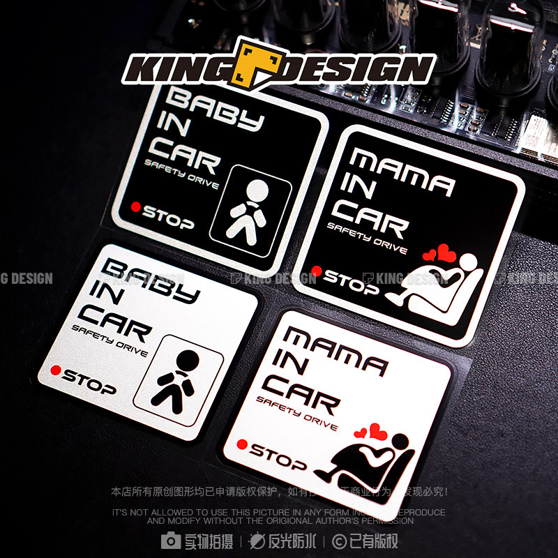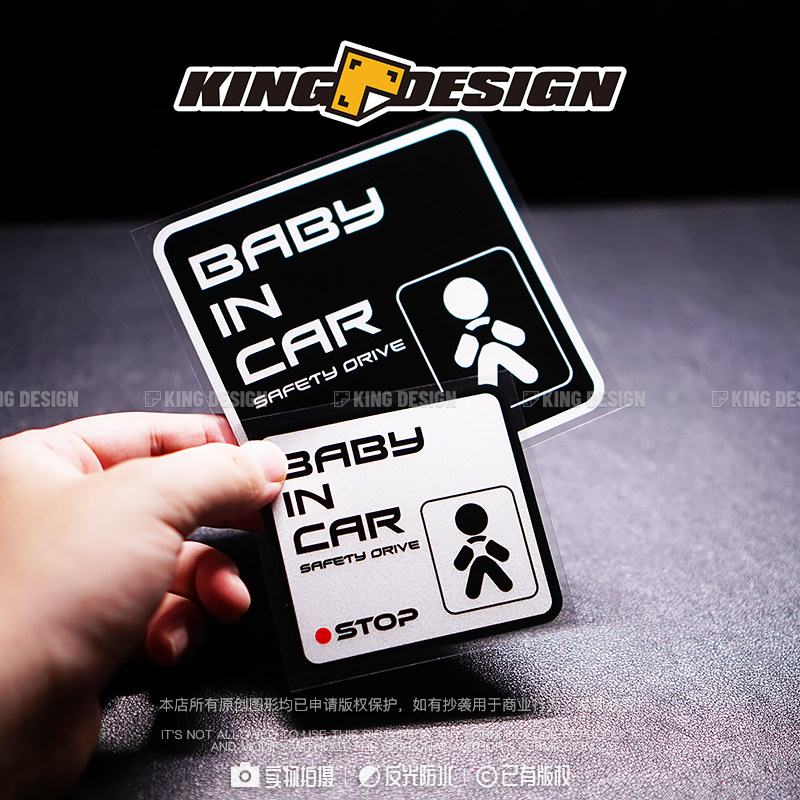 国王车贴baby in car汽车贴纸 车身警示车内有孕妇宝宝反光提示贴